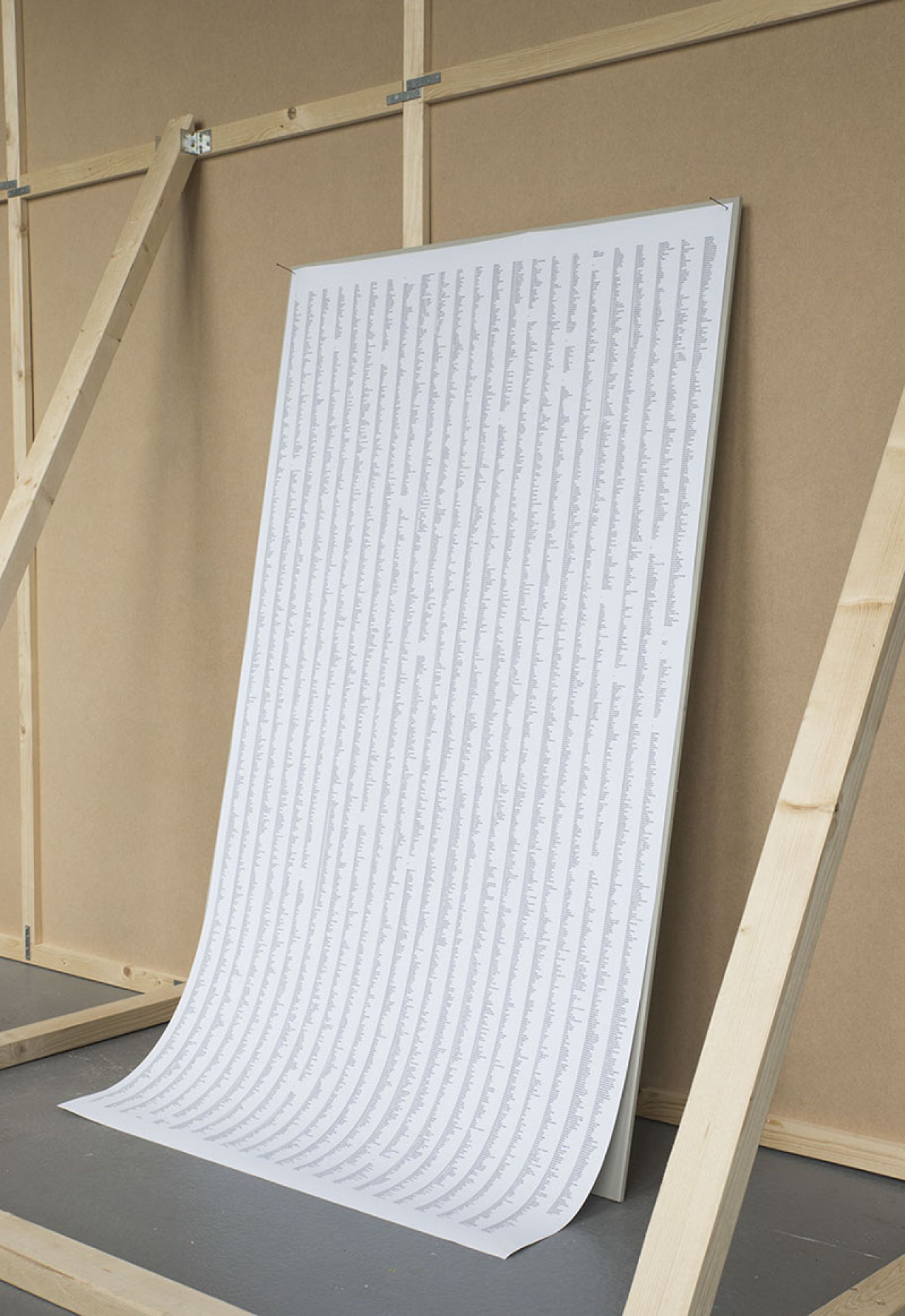 Annabelle Binnerts (1995) studeerde in 2017 af van Beeld en Taal aan de Gerrit Rietveld Academie. Voor haar afstudeerwerk onderzocht ze de relatie tot immense, onbekende ruimtes. Ze is gefascineerd door de manier waarop we deze ruimtes proberen te begrijpen en hoe we proberen een menselijke maat te geven aan het onmetelijke. We benoemen elke berg, ontleden elk insect, elke boom is gecatalogiseerd en geclassificeerd. Er zijn bibliotheken vol met atlassen waarin elke vierkante meter van de aarde is beschreven.