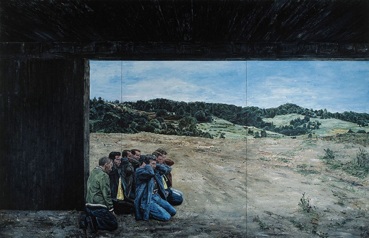 Het lijden van de gewone mens is een terugkerend element in het oeuvre van Ronald Ophuis (Hengelo, 1968). Wie zijn schilderijen onder ogen krijgt, ziet gruwelijkheden uit de recente geschiedenis. Ophuis’ expliciete beelden van verkrachtingen, executies en concentratiekampen laten, evenals zijn titels – Srebrenica, Rape-Hotel/Bosnia, Birkenau – weinig aan de verbeelding over.