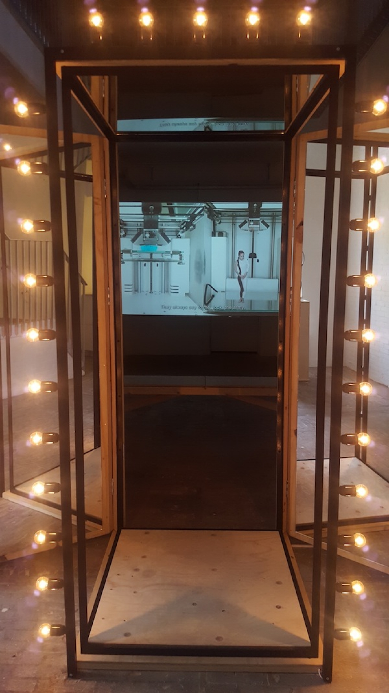 De tentoonstelling Running out of History toont werken van Michal Helfman (IL, 1973), met name rond haar nieuwe, gelijknamige film. De film is een persoonlijke en sterk politieke vertelling over twee personages tegen de achtergrond van de moeilijke verhouding tussen Israël en Syrië. In een theatraal decor vormt een nagespeelde dialoog tussen Gal Lusky (een smokkelaar) en haar Syrische partner de spil van de film. Saillant detail is dat Helfman de film uitsluitend buiten Israël wil vertonen. Gal Lusky speelt niet alleen in de film een dubbelrol; haar rol is autobiografisch en ze is daarom bang dat te veel lokale exposure haar werk zou compromitteren.