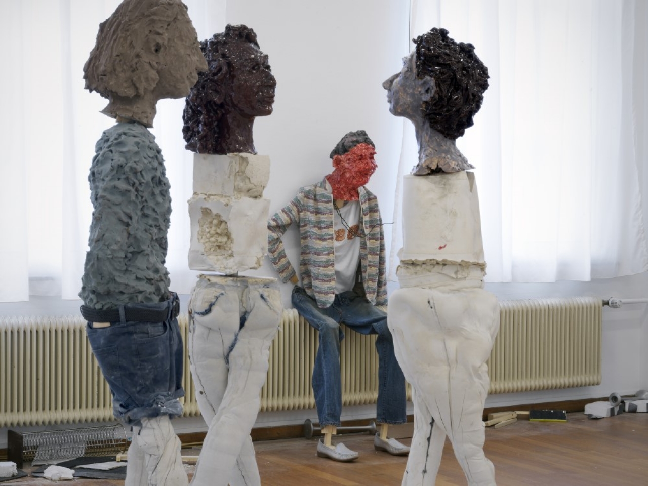 In de grote zaal op de eerste verdieping van Marres, staat een groot aantal sculpturen als figuranten langs de kant, alsof ze wachten hun rol te spelen in het tragische verhaal van The Thief. De cast is samengesteld uit vrienden, familie en bekenden van de kunstenaars. Wie goed kijkt kan een aantal van de expressieve portretten herkennen, Sander en Witte liggen zelf onderuitgezakt tegen de muur. Als bezoeker speel je dezelfde rol als de sculpturen.
