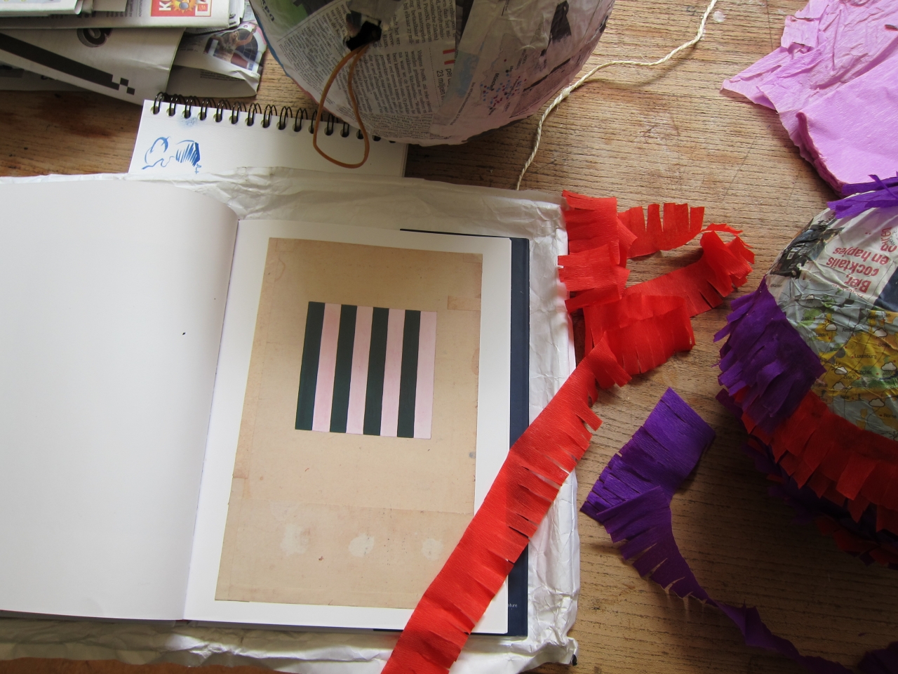 Elke dag komen er een aantal patiënten langs die aanschuiven aan de atelier tafel. Het liefst alleen voor koffie en een sigaret. Ik heb allerlei materialen, papier, verf, hout, gereedschap, van alles. Ik probeer een paar patiënten tijdens de koffie te bewegen tot het maken van een tekening maar dat valt niet mee. Er gebeurt niet veel op het witte papier. Een paar uur lang zitten we aan tafel te praten met ieder een leeg vel papier voor ons.