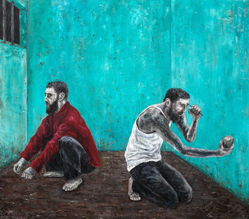 Dagelijks fietst hij nu de twintig kilometer van zijn huis naar zijn werkruimte. Aan de grote, hoge wanden hangen nog de van hem bekende rauwe schilderijen van een vrouw die ineengezakt in de armen van een man een miskraam heeft uit 1998 en een zelfmoordhandeling in een Egyptische gevangenis, een werk uit 2014. Maar op de muur met schetsen en voorstudies zijn aanzetten te zien voor zijn nieuwe werk. De eerste nieuwe schilderijen zijn niet in het atelier, want al op weg om op Art Rotterdam te laten zien.
