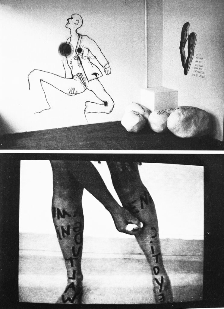 Ik haalde aannames als een puzzel uit elkaar met behulp van de encyclopedie, etymologische en filosofische woordenboeken. Ik wilde kunst maken die als luciferhoutjes tussen de oogleden zou staan. Wakker blijven, niet alles aannemen, maar zelf blijven kijken. En ik wilde het “intellect” gevoelig maken, een lichaam als bedding geven. Tekeningen en schilderijen kregen bijvoorbeeld een huid van pigment en zelfgemaakte verf, inkt mengde ik met houtskool. Grafiet is zwart, maar glanst in het licht als wit.