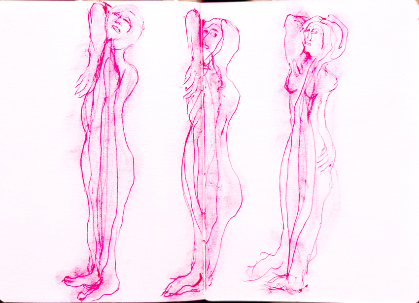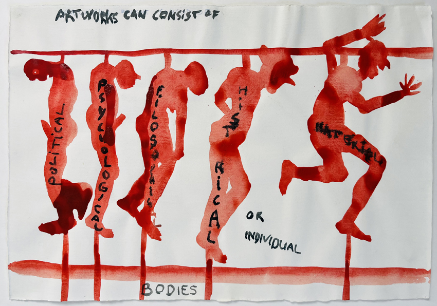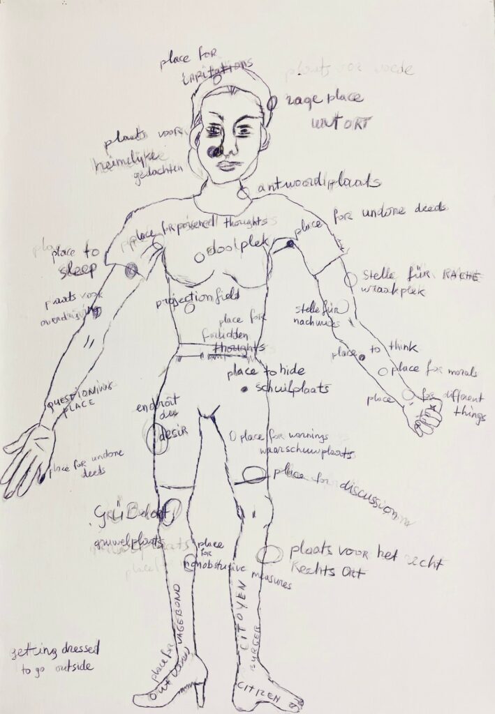 Vanaf ongeveer 2000 kreeg ik allerlei lichamelijke klachten. Ik had vanaf het begin van mijn loopbaan in mijn atelier altijd veel lichamelijk werk verzet: het afslaan van etsplaten, het maken van metersgrote tekeningen met houtskool, ik werkte aan monumentale schilderijen met pure pigmenten die ik handmatig aanbracht, ik maakte grote sculpturen van keramiek, deed fysieke performances, maakte video’s en films en exposeerde veelvuldig op plekken waar ik alles zelf moest organiseren en inrichten. Ik voelde me altijd sterk en onverwoestbaar, maar ik ben een kleine vrouw en met al die lichamelijke inspanningen heb ik vijfentwintig jaar eigenlijk boven mijn macht gewerkt. Ik pleegde roofbouw op mezelf en dacht dat het zo hoorde uit plichtsbesef en een aan mezelf opgelegde discipline en arbeidsethos. Het was een vorm van overpresteren die noodzakelijk was om me als vrouw in de wereld van de eigentijdse beeldende kunst te handhaven en een naam te vestigen. De schade die ik mezelf had berokkend bleek in feite onherstelbaar. Ik kon in ieder geval niet op de manier doorgaan zoals ik gewend was. Ik ben in 2002 opnieuw begonnen toen ik een nieuwe jaaragenda kocht. Op die volstrekt lege pagina’s maakte ik elke dag een tekening om zo een nieuwe start als kunstenaar te maken met een andere manier van werken: kleiner, bescheidener, minder zichtbaar aanwezig in het veld, maar inhoudelijk misschien wel gefundeerder en in maatschappelijke zin gemotiveerder. Voor mij is het een vorm van schrijvend tekenen.