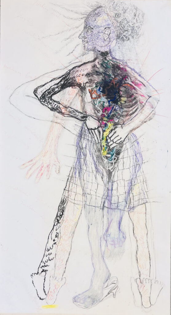 Mijn tekeningen zijn sinds 2021 gebaseerd op tast en aanraking. Door de maatschappelijke, psychologische en economische ontwrichting door de COVID epidemie, de oorlogen in Oekraïne en Gaza is mijn lijfspreuk nu “You have to heal to create”.