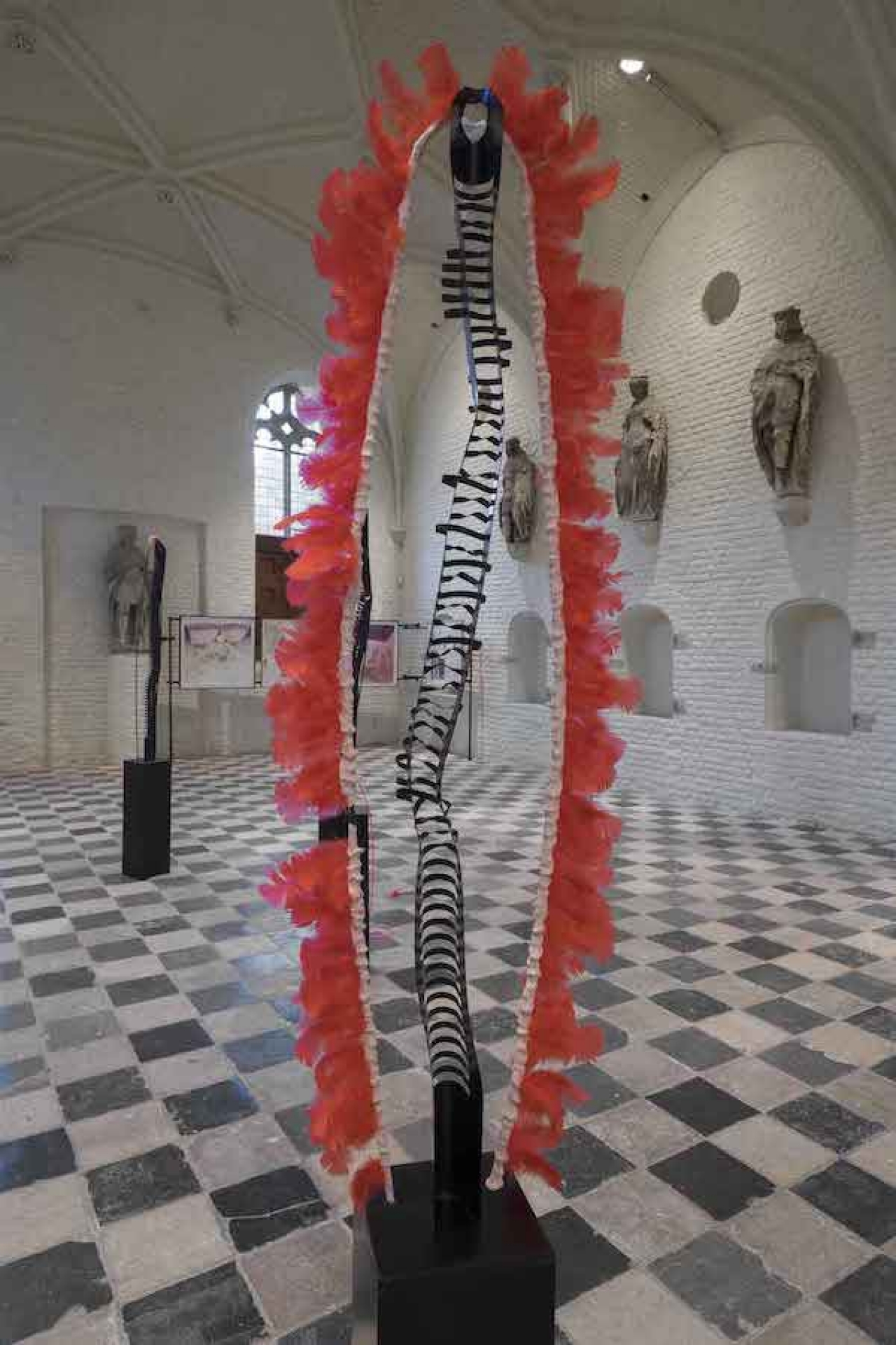 Naast haar (semi)tweedimensionaal werk springen een vijftal sculpturen in het oog; verwrongen cd-rekken waar ze onder meer tongen, tanden en een medisch snoer op heeft geplaatst. Het lijken op slungelige figuren, lichamen die terug zijn gebracht tot een ruggengraat met een kwetsbaar zintuig zoals een tong of een tand. Misschien nogal een letterlijke verwijzing naar een ‘lichaam zonder organen’ maar door de titels van de werken (zoals Classic Beauty, die een vaginavormige boa draagt, en I’m Glad Your Sickness Is Caused By Me) komen ze eerder over als personages en niet als representaties van een groter onderliggend idee.