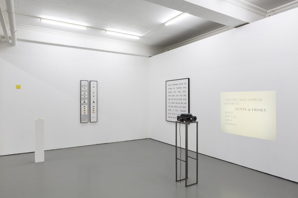 In de centrale hal van de ruimte is in zestien werken de beeldende dialoog te zien tussen docent John Baldessari en student Matt Mullican onder de titel Pong (2008). Eerst is er een willekeurige verzameling foto’s, het antwoord is een foto van een groepsportret uit die verzameling uitgelicht, vervolgens een werk met gezichten van diezelfde foto uitgeknipt en onder elkaar geplakt en tot slot de portretten monochroom uitvergroot en individueel ingelijst, ieder in een netwerk van lijnen. Het antwoord daarop is een foto van een badkuip met alleen de lijnen die rondom de portretten waren getrokken. Steeds zie je hoe de kunstenaar een element uit een eerder werk heeft uitgelicht en opgenomen in iets nieuws. Na een poosje zie je ook al aan de stijl welk werk van wie is. Baldessari’s werk is modernistisch kaal, strak en elegant, Mullican maakt duidelijk bewust rommelig werk met een karakteristiek kinderlijk gekruld handschrift. Zoals het balletje in het oude computerspelletje Pong doen de kunstenaars een actie en reactie spel, maar dan één zonder duidelijke regels. Er is een vermoeden dat de reacties meer zeggen dan we als kijker direct kunnen zien. Zijn er referenties in verstopt naar eerder werk? Zijn er grappen die wij als buitenstaanders niet begrijpen? Karami ziet in dit werk wel een duidelijke vorm van samenwerking. ‘Deze werken hadden echt niet kunnen bestaan zonder het werk van de andere kunstenaar en elk volgend werk is daadwerkelijk beïnvloed, zichtbaar anders dan de voorgaande reactie.’