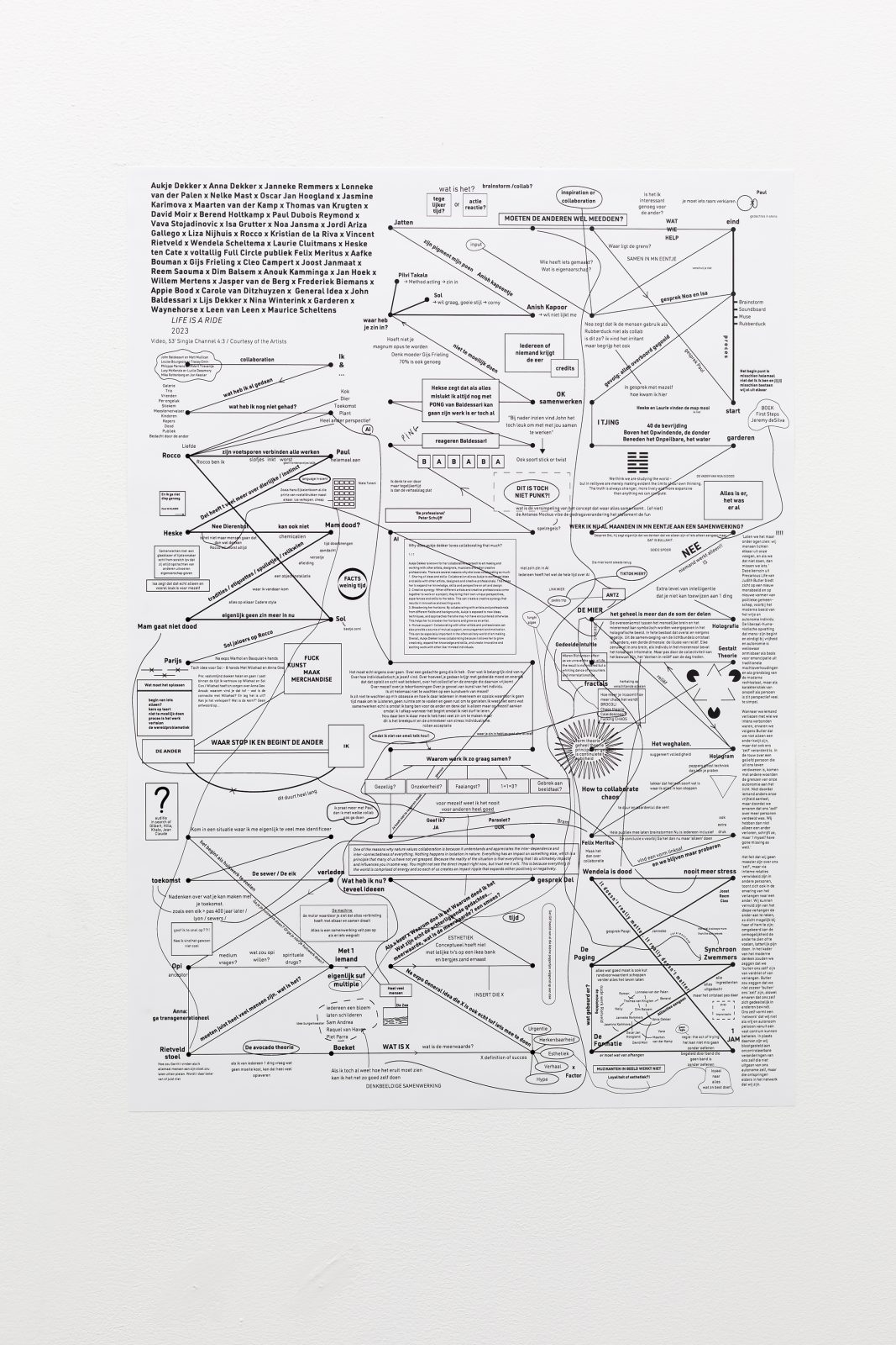 Asha stelt mij ook een vraag: ‘Wij hebben ook geprobeerd samen te werken. Waarom is dat toen niet gelukt?’ Ik antwoord: ‘Omdat we geen duidelijk doel hadden met de tekst die we samen zijn begonnen, geen opdrachtgever, format, of thema.’ Achteraf ben ik niet tevreden met dit antwoord. Misschien hebben we het simpelweg nog niet genoeg tijd gegeven. In het interview achterin in het programmaboekje stelt Aveline de Bruin, curator en dochter van de verzamelaars uit wiens collectie werd geput voor de tentoonstelling: ‘Samenwerken gaat ook over tijd creëren om iets nieuws te maken met een ander.’ En dit sluit mooi aan bij de openingstekst van Heske ten Cate over haar ervaringen met verschillende samenwerkingen vanuit Nest: ‘Toch zijn er steeds wetmatigheden, van ogenschijnlijk vanzelfsprekend en schrikbarend simpel, tot diepzinnig en complex in de praktijk.’ Ik ging op reis met Asha Karami om een tentoonstelling te bezoeken, maar ook om met haar te praten en te horen hoe ze denkt over haar eigen werk en dat van anderen. Dat is denk voor mij ook het ideaal, in kunst en daarbuiten, namelijk dat het samenwerken niet een middel is voor iets anders, maar doel op zichzelf. Daar kan vervolgens van alles uit volgen: een gedicht, een documentaire, een schilderij, een nieuwe kijk op de wereld, vriendschap, een interview.