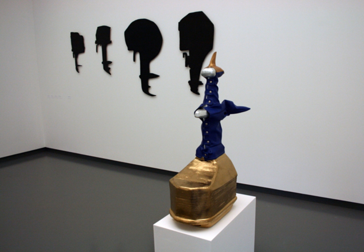 We lopen langs verschillende werken, die allemaal in de zogenaamde trofeekamer terecht komen. ‘Ik trad op in Buenos Aires. Ik liep in het pikdonker op het podium af. Ik deed alsof ik uiterst geconcentreerd was. Toen werd er iets nats en zwaars in mijn handen gedrukt. Pas met de lichten aan zag ik wat het was: een groot stuk vlees. Dat vond ik zo ontroerend. Het was een lief gebaar. Dat stuk vlees heb ik nagemaakt van balsahout. En dat gaat in mijn trofeekamer in het Van Abbenmuseum.’