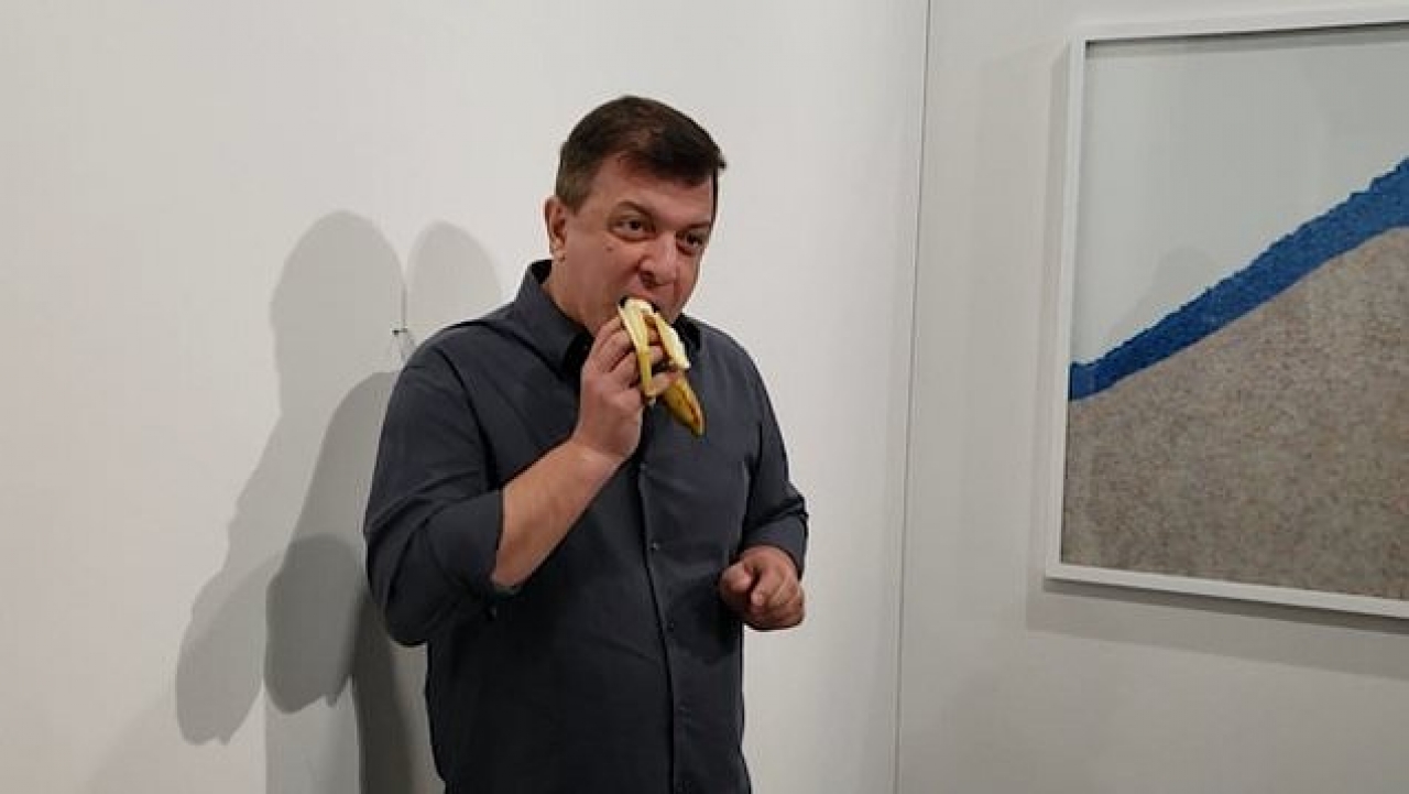 Gelukkig liep op Art Basel ook de kunstenaar David Datuna rond. Ook al bestaat Datuna’s kunst voornamelijk uit installaties van lenzen en scherven, werd hij door het nieuws plotsklaps tot ‘performance artist’ uitgeroepen toen hij de banaan van de muur pelde en hem kalmpjes opat. “Hungry Artist”, noemde hij zijn daad terloops, terwijl hij werd gefilmd door tientallen onthutste bezoekers. Datuna werd door de organisatoren van Art Basel van het beursterrein verwijderd, maar Cattelans galleriehouder Emmanuel Perrotin deed geen aangifte. Het ging bij Comedian dan ook niet om de banaan zelf, maar om het idee – een banaan op de muur geplakt met ducttape. De banaan zelf kan op verzoek van de koper altijd vervangen worden. Datuna had het kunstwerk niet vernietigd.