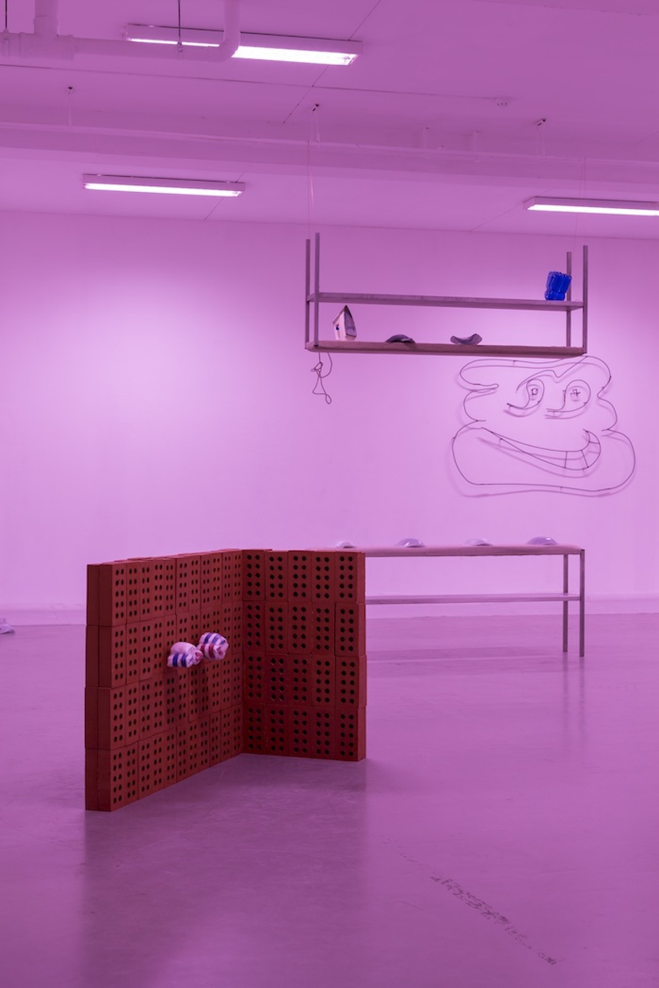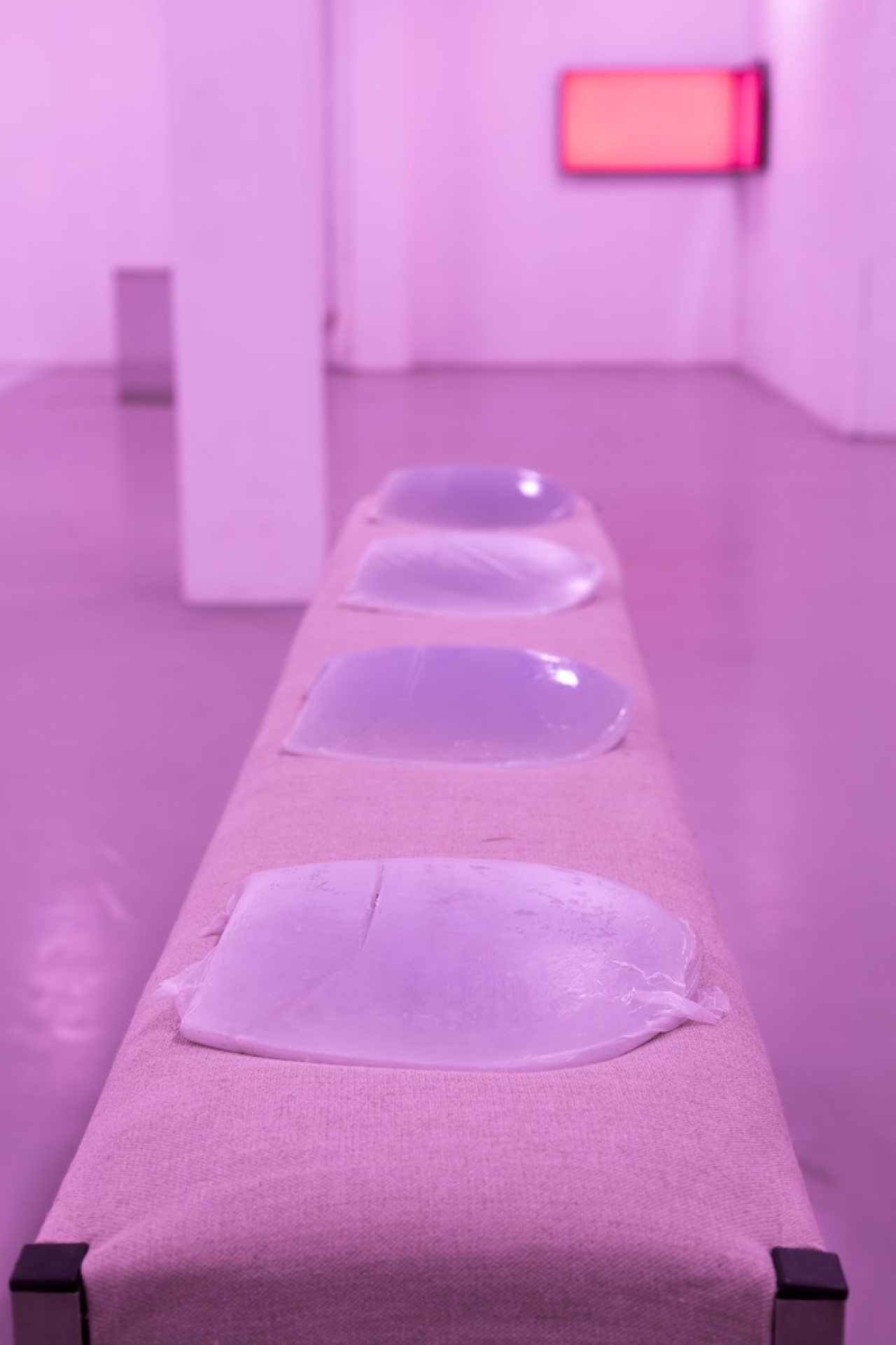 The works in the exhibition are the layered and merged results of the explorations developed from these notions, not only when it comes to the relations between persons, groups and other organized entities but also between them, the non-humans and the things. Without trying to establish definite answers, these explorations have led to aesthetic assemblages that interlock notions of identity, material states, role models, interfaces and marketing strategies.