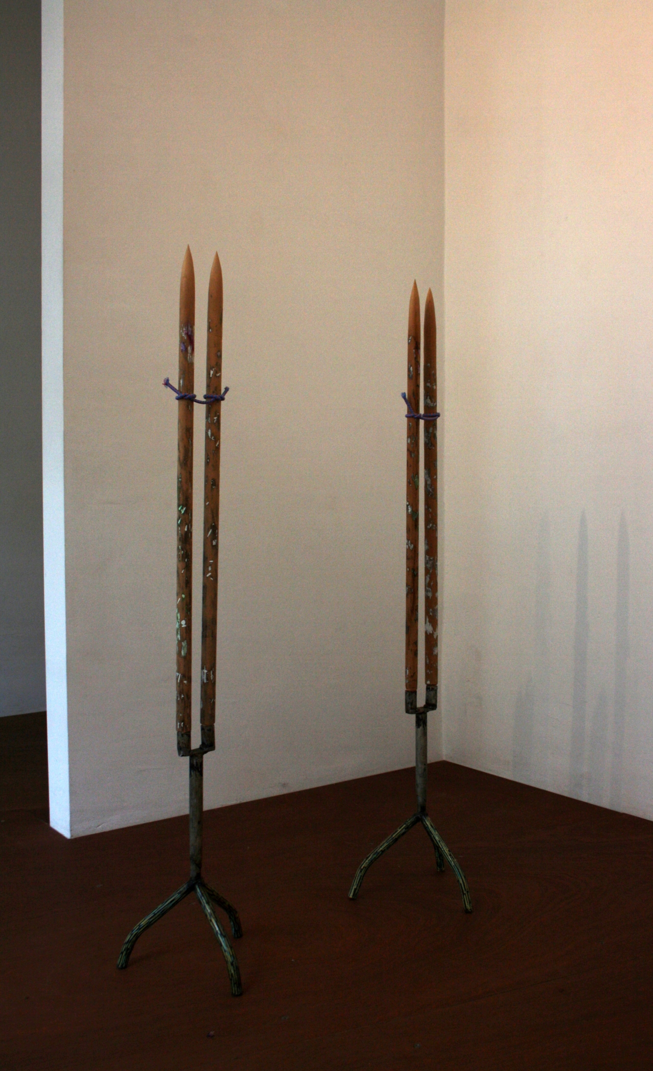 De tweede kunstenaar, Timo van Grinsven, koestert een liefde voor getallen: 8 was aanleiding voor het werk dat hij hier toont. Behalve cijfers heeft Grinsven een fascinatie voor restruimten en deze twee aspecten komen samen in Gaten van de acht, waar de acht als een bril gezien kan worden waarin de lengte wordt benadrukt door cilindervormen die uitlopen in een spitse punt. Het kunstwerk bestaat uit twee haast identieke uitvoeringen die naast elkaar geplaatst zijn, één maakte hij zelf en een kopie hiervan liet hij door een ander maken. Een kleine cactus in de vensterbank die Grinsven cadeau kreeg van een buur met een driezijdig geschulpte stam laat wederom een herhaling zien en tussenruimtes, die hierdoor in dialoog zijn met Gaten van de acht. De plant is gepot in een vaasje waar een ander soort plant op afgebeeld staat.
