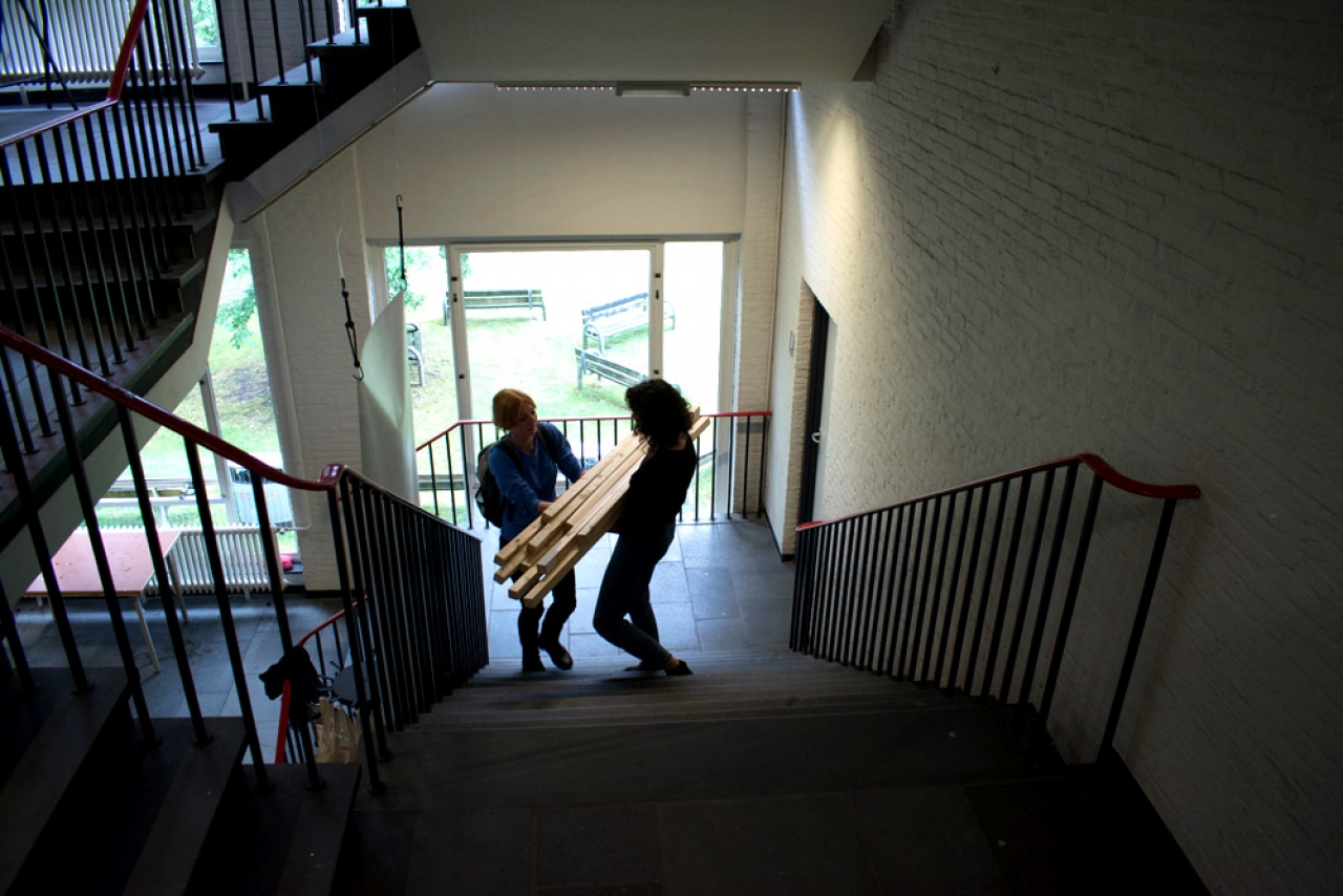 Het gaat over abstracte ideeën, experimenten, intuïtieve verwijzingen en persoonlijke onderzoeken. Er is nauwelijks werk te zien dat vooral om esthetische redenen gemaakt is, de ideeënwereld lijkt constant het uitgangspunt te zijn. En tegelijkertijd, en nu heb ik het vooral over de afdelingen autonome kunst en fotografie, is er een enorme zelfstandigheid die in ieder eindexamenwerk schuilt en is het onmogelijkheid om de expositie een overkoepelend thema te geven. Van een lichtinstallatie met veel rook en notenolie tot een raam bedekt met bladgoud en van een onderzoek naar de representatie van een berg tot een performance waar bouwmaterialen worden versleept. Het is niet duidelijk of dit aan het specifieke jaar ligt, of eerder aan de filosofie van St Joost, maar er is nergens een afgetekende stempel van de academie te zien. Iedere kunstenaar heeft een volledig eigen onderzoek gevoerd, én dat is verfrissend.