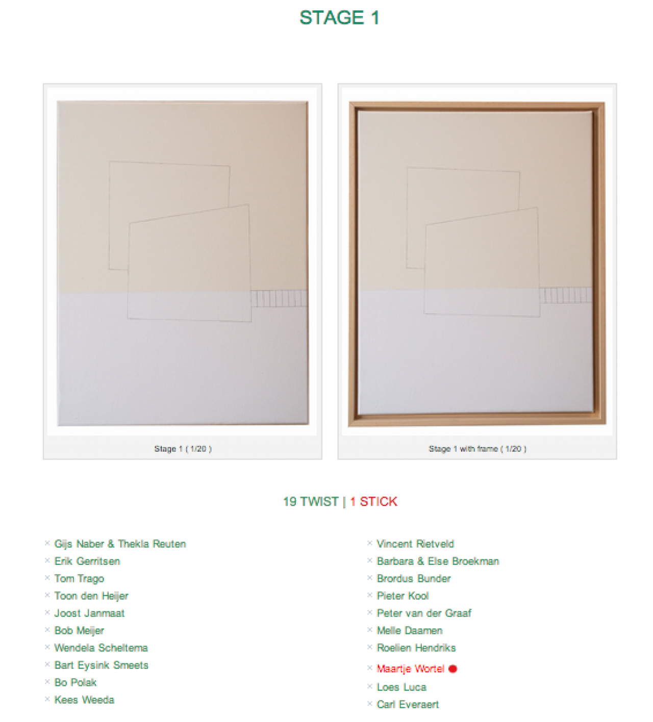 Toen ik het aan m’n vader liet zien zei hij: “Dat is toch hartstikke lelijk? Zou ik nooit kopen.” Maar met lijst, en bij een tweede keer kijken vond hij het opeens erg bijzonder. Subjectiviteit wederom goed vertegenwoordigd. Ik ben blij met deze stap. Het was eigenlijk al een stap binnen een stap en ja het lijkt onaf, maar het schreeuwt niet. Als een Zweedse exchange studente die zonder dat iemand het doorheeft de beste van de klas is, groeit ze stilletjes waar ik bij sta. Die kans heeft dus niemand van de kopers, tenminste ik denk niet dat iemand tijd of zin heeft om hier 36 uur naar te kijken