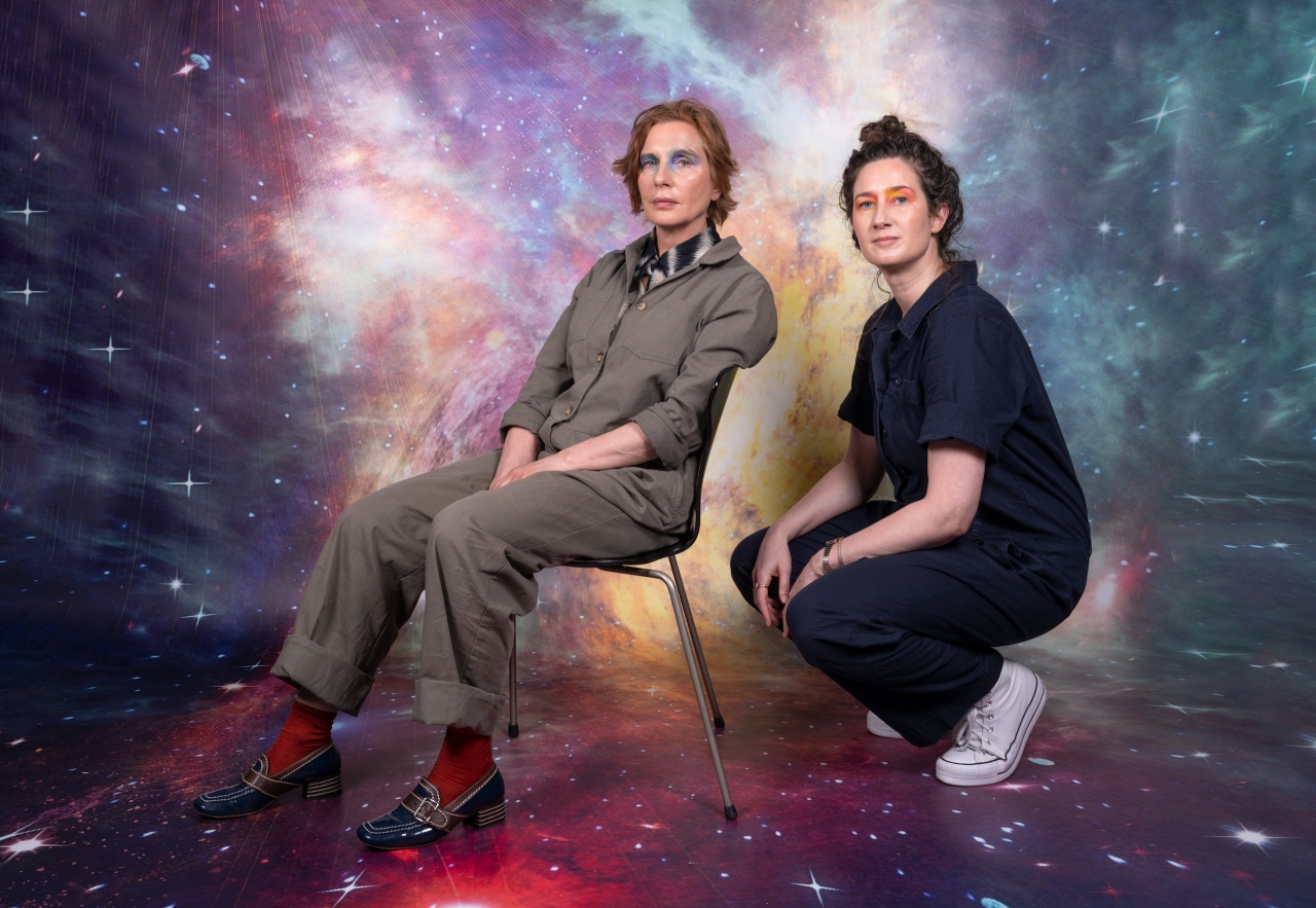 Portret Hanne Hagenaars en Merel Bem in overall, door Jan Hoek, 2021