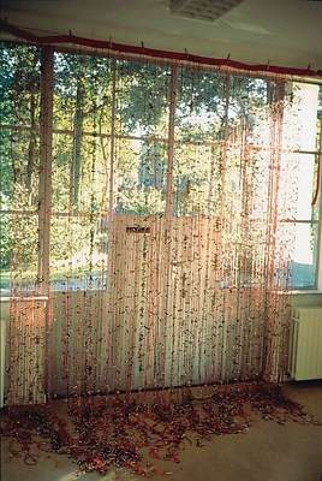 Fransje Killaars maakte tijdens haar verblijf op Het vijfde seizoen, een artist in residence plek binnen de psychiatrische inrichting Den Dolder, een soort vliegengordijn van sigarettenpeuken.
