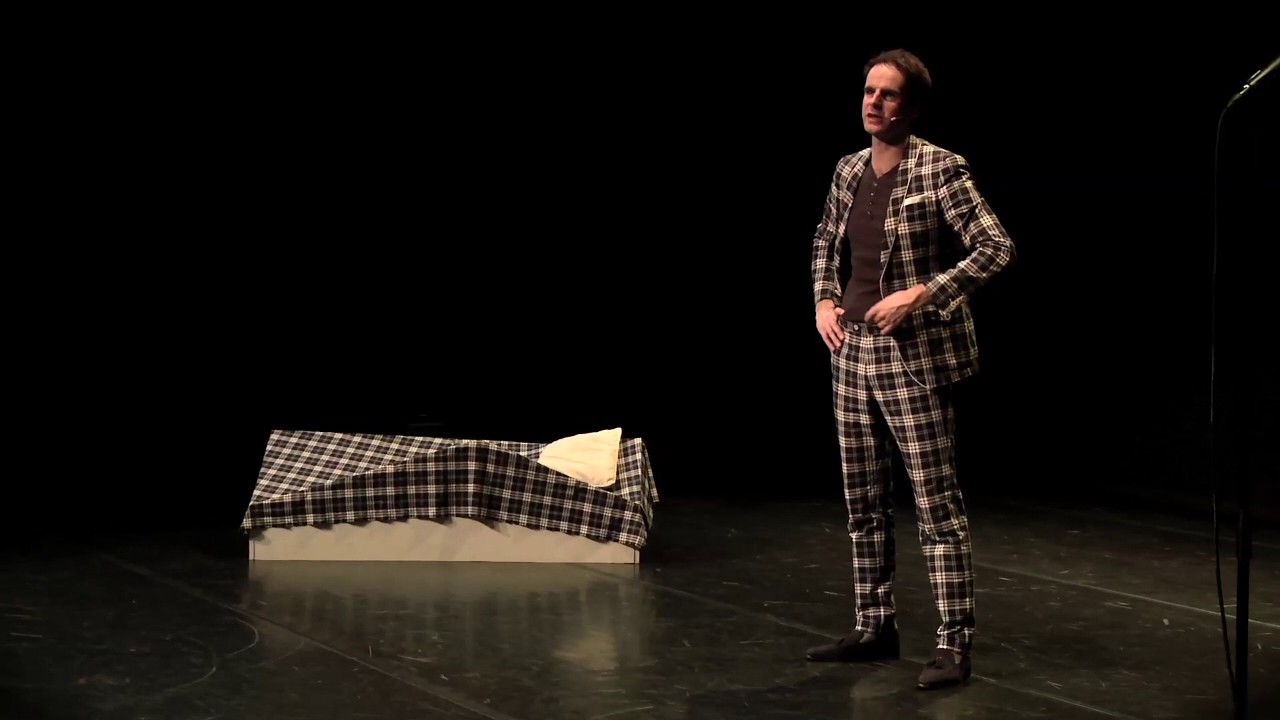Een deurkruk met je hand erop, dat die deurkruk is gemaakt voor je hand, dat je uit onhandigheid je stoot aan die deurkruk dat ervoor zorgt dat je wil doen alsof alles soepel verloopt, maar je eigenlijk die verdomde deur niet open krijgt, dit veroorzaakt schaamte want eigenlijk wilde je zo nonchalant mogelijk de ruimte verlaten.