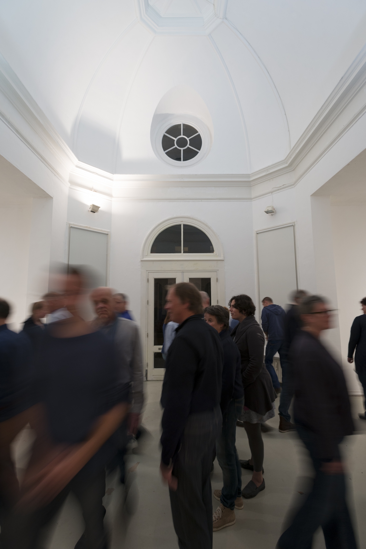 Wij zagen ons in een kleine groep mensen veranderen, luidt de titel van een gedicht (en dichtbundel) van Tonnus Oosterhof. Die zin speelt door mijn hoofd als ik denk aan de vreemde gewaarwording die je ondergaat tijdens de performance van Moorman. Je ziet en hoort hoe een gezelschap mensen zich van je losmaakt, zich voor je neus formeert, een eenheid wordt. Dan daagt het besef dat jij door hun afsplitsing ook in een groep mensen verandert, een restgroep of schil. Zo gaat dat. Groeperen en gegroepeerd worden, er valt niet aan te ontkomen. Soms wordt je uitgebannen, soms wordt je opgenomen. Zelden maak je het zo bewust mee als tijdens de performance van Cindy Moorman.