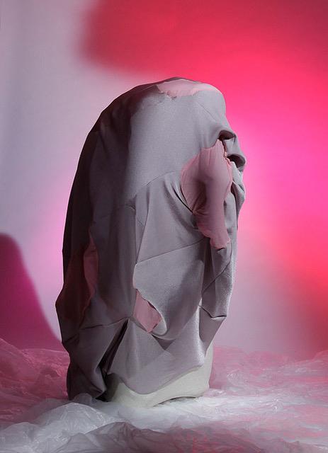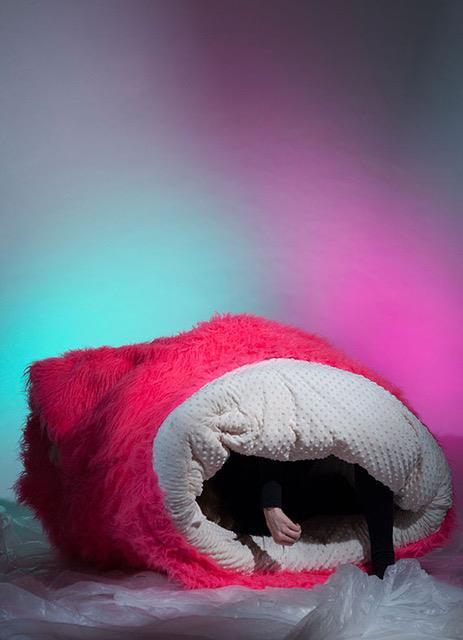 Dietrich: Ja, het is een soort kennisontwikkeling door middel van belichaamde ervaringen. De paradoxale relatie tussen het materiele en immateriële is voor mij belangrijk; om bij het immateriële te komen gebruik ik juist veel materiaal. Ik creëer een innerlijke transformatie door externe items en objecten, bijvoorbeeld. Mijn meest recente project Elastic Habitat speelt zich precies op deze paradox af. Hiervoor onderzocht ik interne omgevingen en individuele ervaringen van imaginaire lichamen en creëerde samen met kunstenares en kostuumontwerpster Janneke Raaphorst een garderobe voor het speculatieve lichaam’, die in een immersieve installatie door het publiek gedragen en ervaren kon worden.