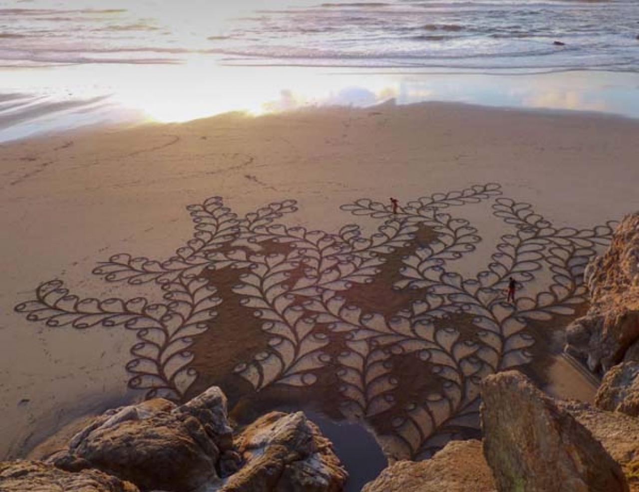 Andres Amador tovert, gewapend met een slechts een hark en een touw -om de richting te bepalen-, bij laag tij de meest uitgestrekte zandvlakten om in tijdelijke totaalkunstwerken. Hier een selectie van zijn werk, onder het mom van ’te mooi om niet te delen’.