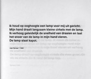 Al ruim 40 jaar maakt Toine Horvers performances, en in de loop der jaren is er meer taal en schrijfwerk bij gekomen: na de uitvoering worden performances op een feitelijke manier omschreven, of hij probeert in taal te vangen hoe de wolken in de lucht voorbij glijden. In zijn meer recente opvoeringen, speelt de combinatie van woord en beweging een rol. Toine draait bijvoorbeeld om zijn eigen as, en roept de namen van de windrichtingen op het moment dat hij in die windrichting gedraaid staat.
