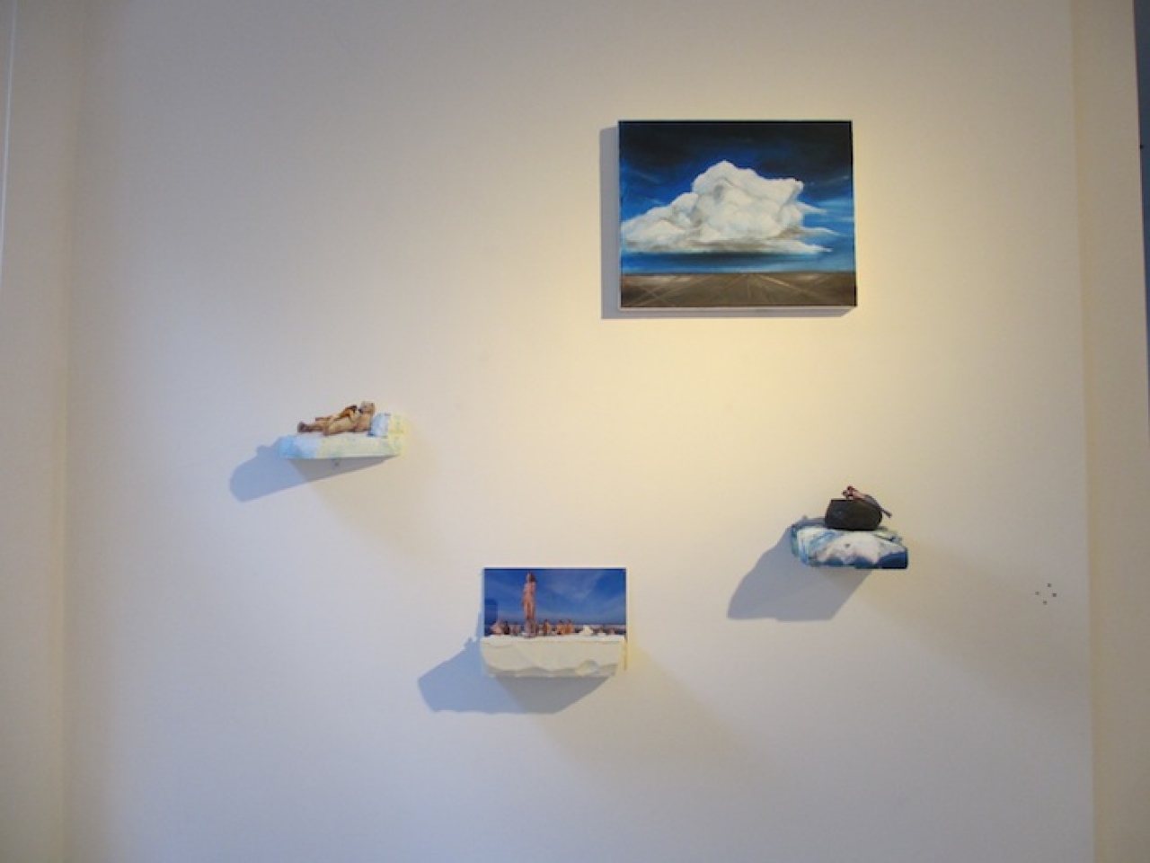 De cinematografische transformaties in het werk van Lars Weller vinden we op een andere manier terug in de schilderijen en de 3d collages van Marit Dik. Vooral die collages zijn gemaakt als een miniatuur-set voor een film. Je kunt je er hele scènes in voorstellen. Het zijn als het ware opengewerkte decors waarin camera’s vrijelijk kunnen bewegen om iedere gezichtshoek mogelijk te kunnen maken.