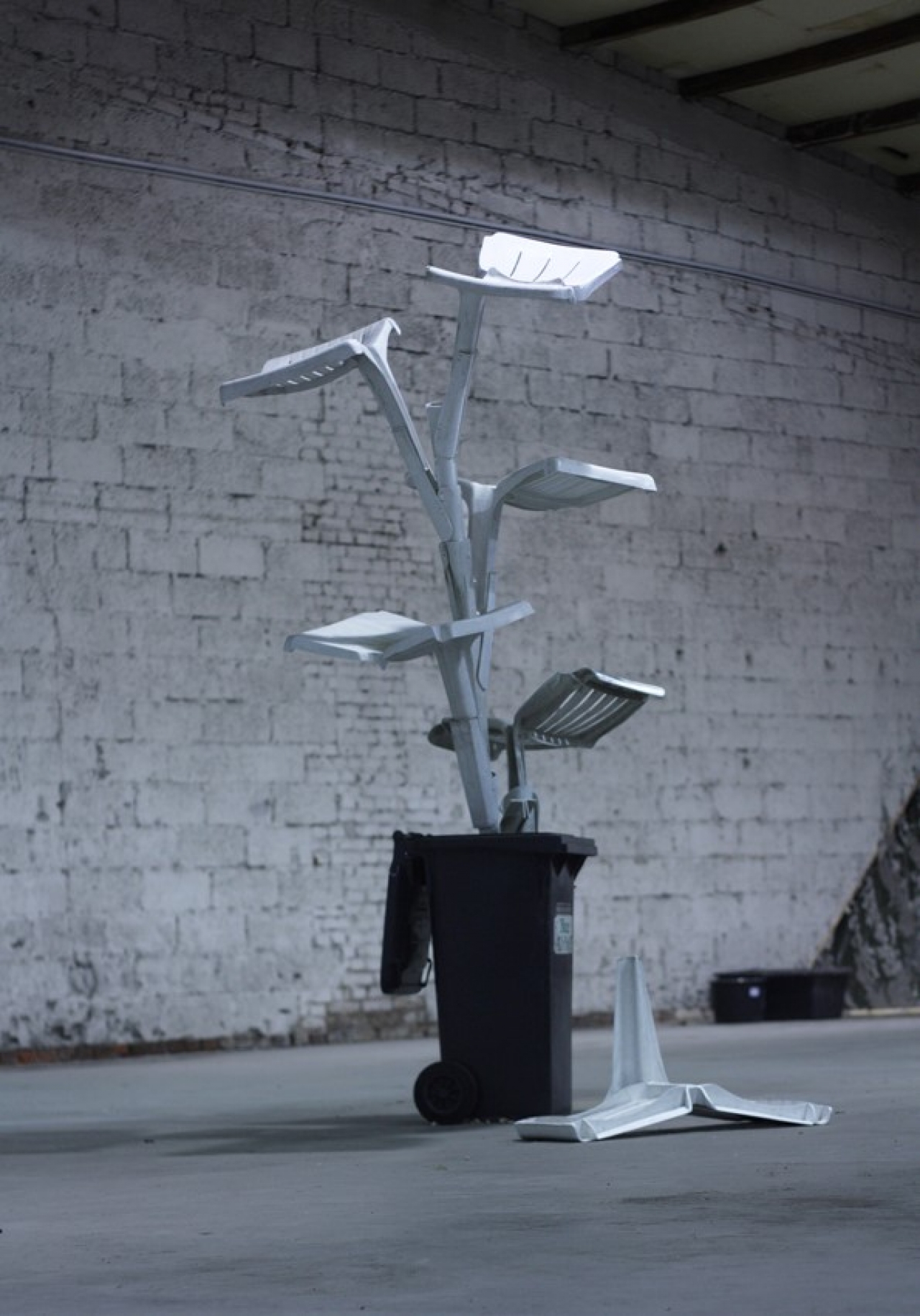 ‘Monobloc’ is een project van beeldend kunstenaar Bert Loeschner, waarin hij de plastic tuinstoel nieuw leven geeft. Hij onderzocht de rol van de welbekende tuinstoel binnen de wereld van design en ontdekte zowel functionele als esthetische eigenschappen binnen dit ontwerp. Naar aanleiding van dit onderzoek maakte hij een aantal nieuwe creaties. Door de stoelen te verwarmen, kan Loeschner de stoelen vervormen en buigt ze tot een nieuw ontwerp. Op humoristische wijze worden de stoelen in een andere context gezet; de tuinstoel met een twist. De stoelen zet hij op verschillende plekken in de openbare ruimte, waardoor hij de toeschouwer een nieuwe kijk geeft op dit alledaagse object.