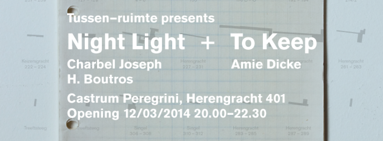 De Libanese kunstenaar Charbel-joseph H. Boutros houdt zich vaak bezig met het idee van ontoegankelijkheid, waarbij zijn werk op melancholische wijze vormgeeft aan een permanente afwezigheid. Boutros presenteert voor Tussen-ruimte ‘Night Light’ in een afgesloten steeg naast de Syrisch-Orthodoxe Kerk, en bij Castrum Peregrini. Het woord Licht zal geschreven worden in het Syriac, een dode taal. Het donkere op een andere plek op aarde, wordt het licht in een verborgen ruimte in Amsterdam. Het werk gaat precies om middernacht uit, wanneer de stad gaat slapen. Ook in Castrum Peregrini komt een neon te hangen met het woord Light, als een Siamese tweeling. Het zal een licht zijn op een verborgen plek. Deze neon, die nooit zichtbaar wordt, verwijst naar de twee priesters die in Syrië zijn ontvoerd in 2013. Het reflecteert ook op de geschiedenis van Castrum Peregrini, een schuilplaats voor vluchtelingen tijdens de Tweede Wereldoorlog. Charbel Boutros zal het werk verder toelichten tijdens de opening.
