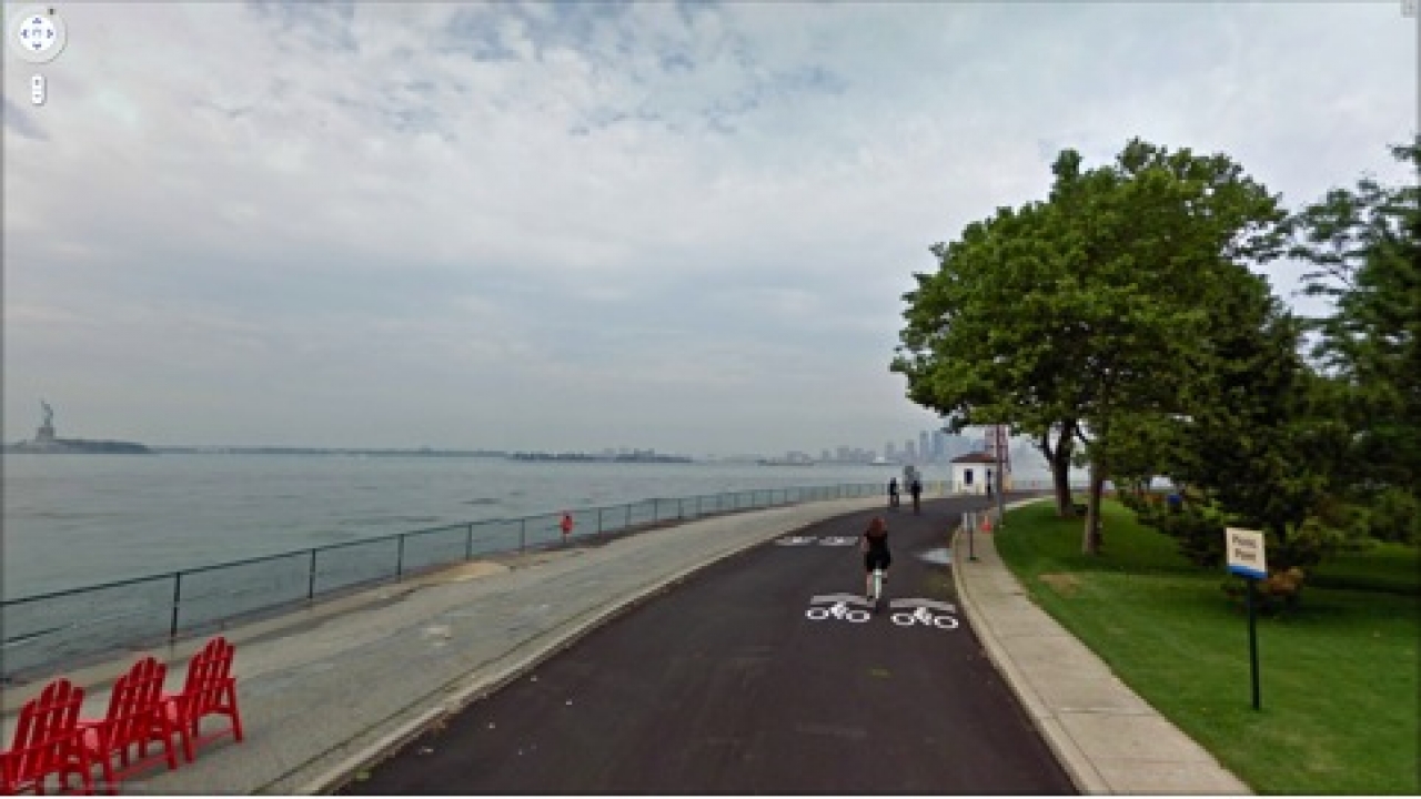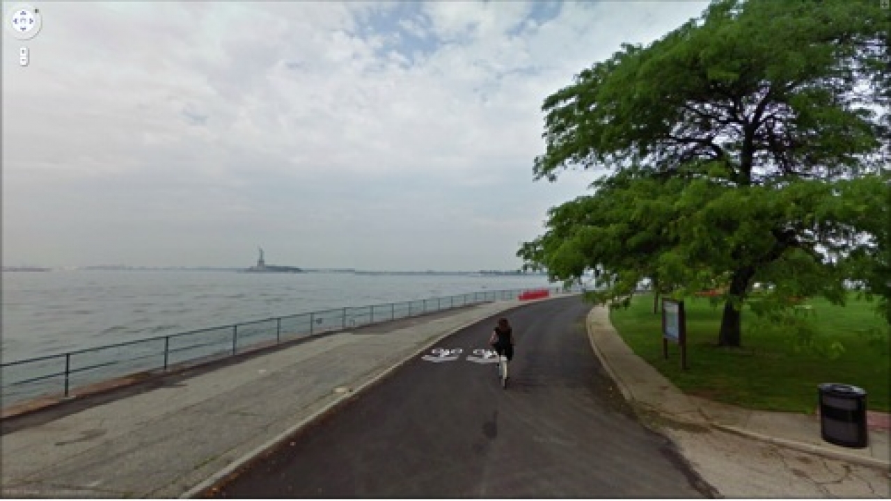 Ook naar het eiland met de fietsende vrouw ben ik vaak teruggekeerd. Zij is er dag en nacht, zomer en winter. Vandaag keek ik weer en alles was anders. Toen ik zag dat de zon uitbundig scheen – terwijl er al jaren dezelfde mist hing – drong het tot me door dat er iets niet in de haak was. De meeste straten waren niet meer toegankelijk. Maar het ergste was: ik kon haar niet vinden. De dame op de fiets was er niet meer. Google heeft de foto’s vernieuwd. Terwijl ik het eiland afspeurde zag ik dat er een route was toegevoegd, de tocht met de veerboot naar het vasteland. Is dit misschien het spoor waarlangs ze is verdwenen?
