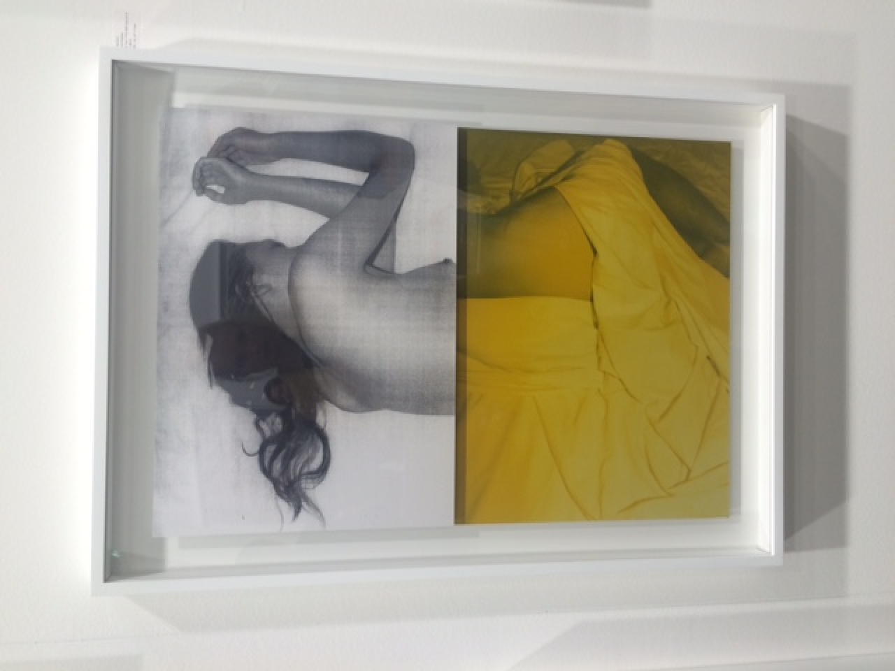 Op dezelfde locatie is ook het werk van Mohammad Ghazali te zien in Ag Galerie uit Tehran. Fragiele glazen platen staan op plankjes tegen de muur aan. In deze platen zijn kleine polaroid foto’s verwerkt. Abstracte beelden van kleuren die doen denken aan een opkomende zon. Soms is er heel licht een landschap te onderscheiden.