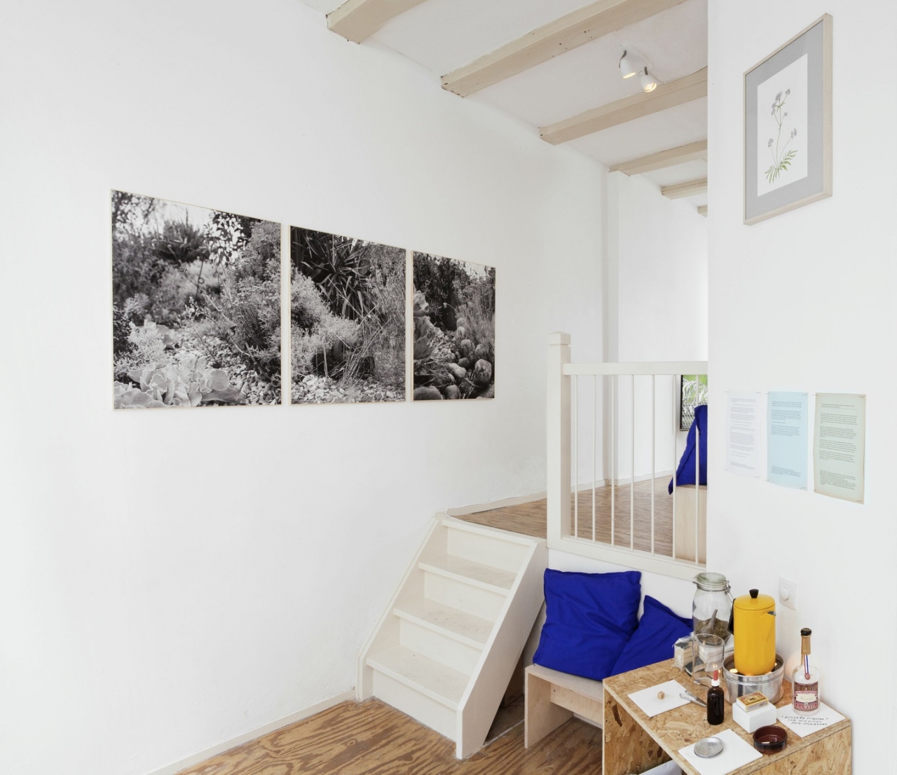 Direct in de entree van de ruimte hangt een realistische tekening van de kruidenachtige valeriaanplant, die medicinaal onder andere wordt gebruikt vanwege haar kalmerende werking. In Rongwrong hoef je het niet te slikken of te kauwen. De kalmte sijpelt er uit de muren.