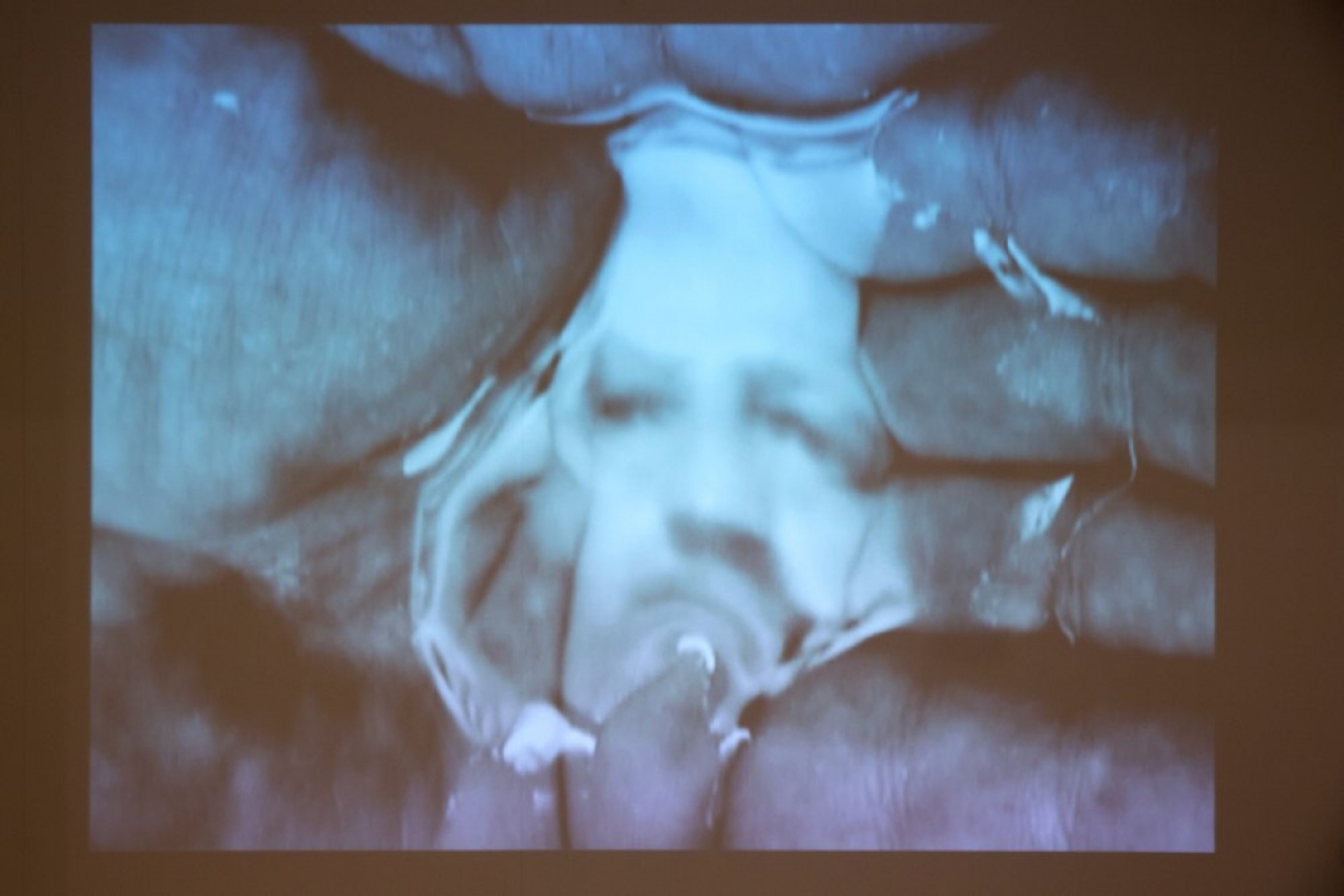 De zelfportretten van Oscar Muñoz (1951), bestaande uit twee individuele werken, hebben meer dan alleen hetzelfde gezicht met elkaar gemeen: beide bestaan uit kwetsbaar materiaal. Op de filmbeelden die op de muur geprojecteerd worden zie je hoe Muñoz zijn portretten met houtskoolpoeder in water aanzet. Van lange levensduur zijn de portretten niet; haast direct nadat de houtskool het water raakt, begint het materiaal te vlekken. Badend in een wasbak en een handpalm kijkt het gezicht je aan, om vervolgens in het afvoerputje en tussen de vingers door weg te lopen. Langzaam drijft het portret uit elkaar, tot er een wirwar van zwarte lijnen overblijft.