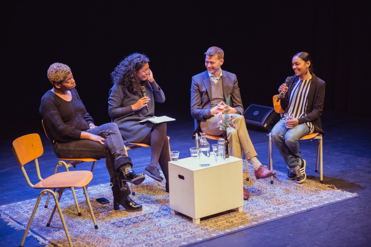 Fiep van Bodegom leidt de paneldiscussie met modevormgever en beeldend kunstenaar Marga Weimans, danser en CultuurSchakel adviseur Poernima Gobardhan en Steven Ten Thije, curator van het Van Abbemuseum in Eindhoven en auteur van het boek Het Geëmancipeerde Museum. Ten Thije schetst hoe het Van Abbemuseum met diversiteit en inclusiviteit omgaat. Vooral beoogt Ten Thije het betrekken van partners en publiek in het programma, door met groeperingen te bekijken wat de vragen zijn, welke thema’s het museum zou moeten adresseren. Ten Thije: “Groepen die ons nog niet gebruiken moeten mede-eigenaar worden.”