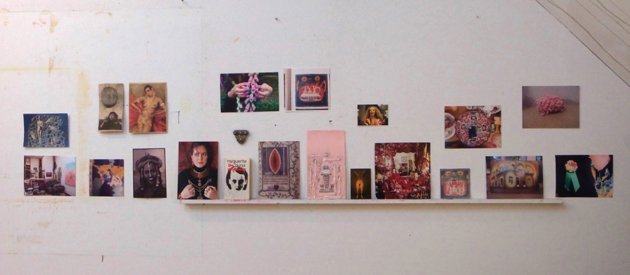 Om het werk te introduceren is er geen tekst maar een visuele uitleg, een reeks beelden, kleine tekeningen, foto’s een broche, een boek, krantenknipsels die met elkaar de denkwereld van de kunstenaar verbeelden. Alsof het een ontmoeting met de kunstenaar is.