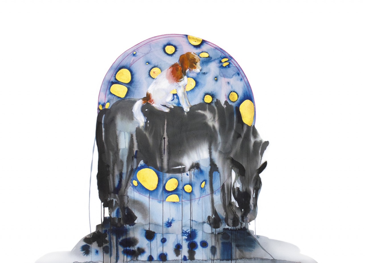 Welke techniek of discipline Edith Meijering ook beoefent, alles wordt bij haar een schildering. Dat is in haar geval een samentrekking van schilderij en tekening. Ze levert zich uit aan het gebaar van het losse schrift met kwast en penseel. Wie haar op haar website in de korte documentaire over haar kunstenaarschap aan het werk ziet, wordt getroffen door de vanzelfsprekende trefzekerheid waarmee ze een compositie opzet. Het ziet er natuurlijk en weloverwogen uit, vanuit een totale beheersing van geïmproviseerd handelen. Die handelingsbekwaamheid kun je alleen bereiken door het heel veel te doen, door eindeloos werken, proberen, mislukken en opnieuw beginnen. Het schijnbare gemak dat ze ten toon spreidt is het resultaat van de enorme moeite die ze zich heeft getroost zo te kunnen werken. Het heeft in haar voordeel gewerkt dat ze nooit iets anders heeft overwogen dan te tekenen en te schilderen om werkelijk tot haar recht te kunnen komen; dat is haar natuur en wezenlijke staat van bestaan. Als het erop aankomt kan ze alleen uit zichzelf putten om zich met de wereld te verstaan; door toe te geven aan de nieuwsgierigheid naar wat haar tegelijkertijd vreemd en eigen is en wat haar fascineert. In haar werk stelt ze aan de orde hoe levensbeschouwing en menselijkheid een lichamelijke weerslag krijgen. De mens- en dierfiguren die ze schildert en tekent, vaak ook in gecombineerde mythologisch aandoende figuren, zijn vaak in een staat van vervoering. Dat extatische maakt haar werk enigszins bedreigend, maar vooral ook verleidelijk en ontroerend. Die gevaarlijke verleiding maken haar schilderijen ‘vervaarlijk’, net als ‘schildering’ een contaminatie van elkaar aanvullende benamingen.