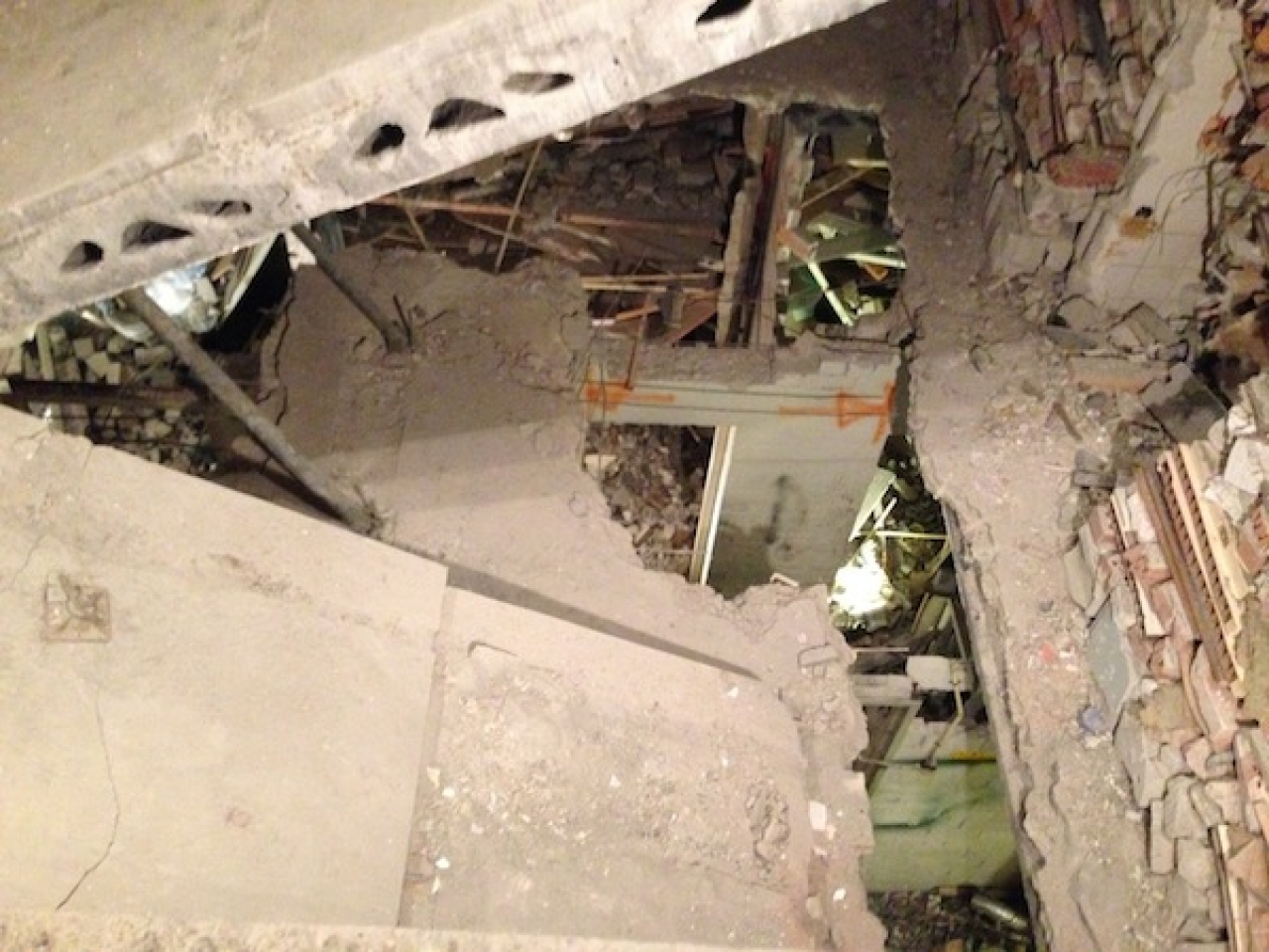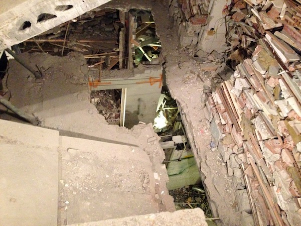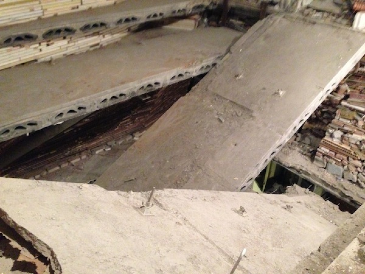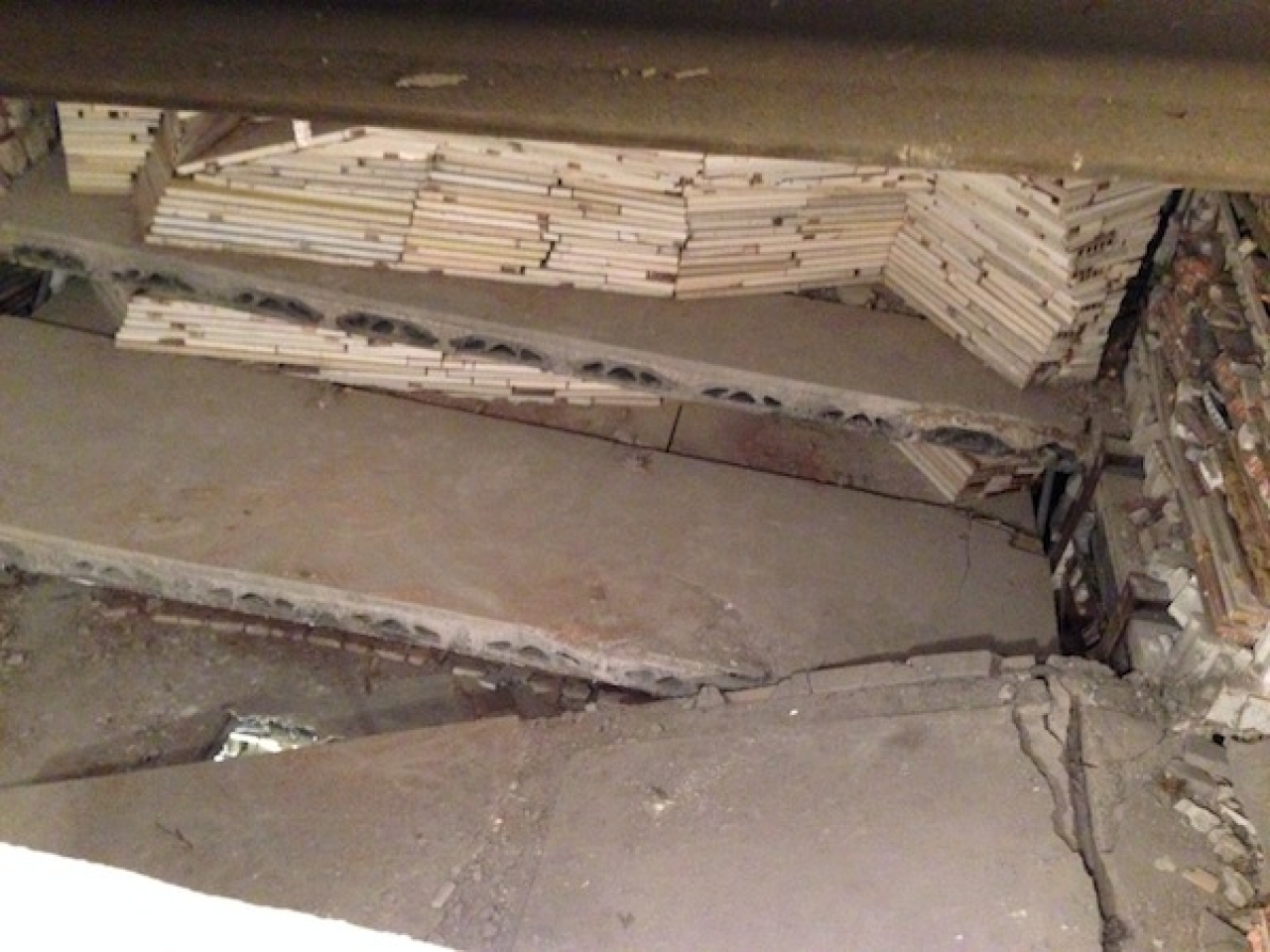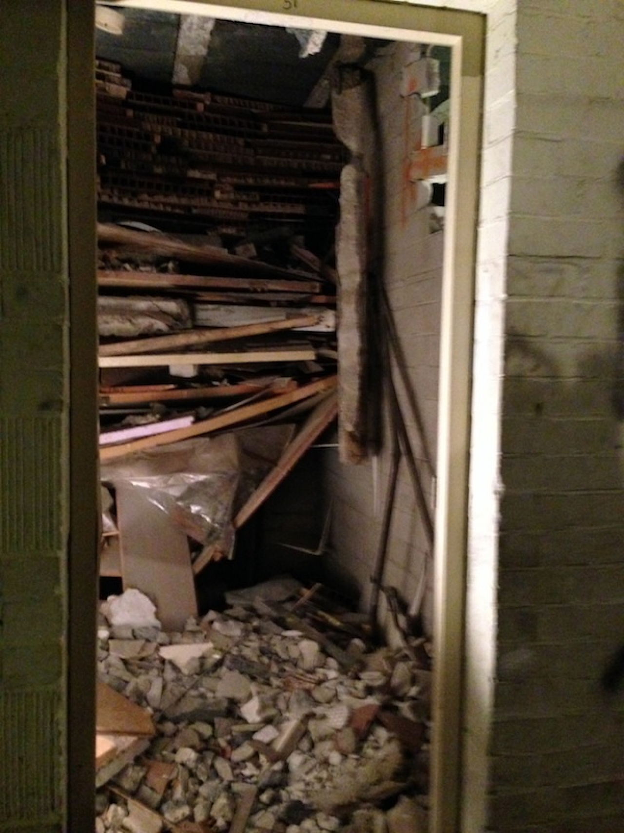 erwoest Huis Op Noord is een overweldigende ervaring van verwoestende schoonheid. Vloeren zijn scheef gezet of verzakken; wanden zijn er deels of volledig uitgeslagen. Vloeren vallen loodrecht naar beneden (en worden zo weer wand) of vallen in een kruis. De stapelingen, die alle wanden bedekken (chaotisch of juist zorgvuldig geordend tot architectonische sculpturen) hebben uitgesproken vormen. Alles staat én is scheef. Een monumentale constructie, het inherente falen nadrukkelijk in zich herbergend.