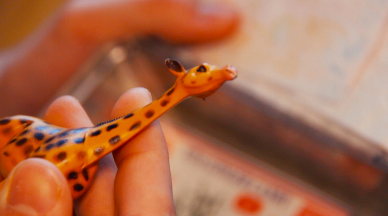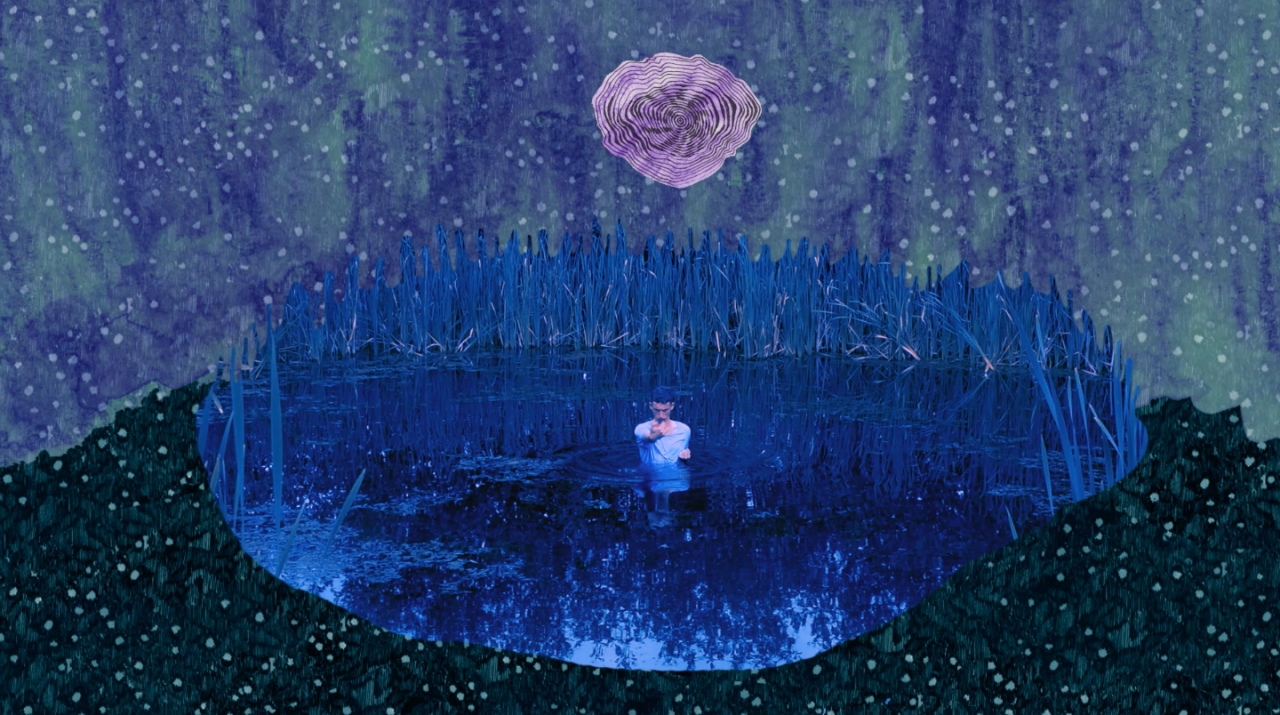 Een jongen zit op de bank, wijdbeens en met een iets te groot voetbalshirt aan. Hij kijkt verveeld voor zich uit zoals alleen pubers dat kunnen. Zijn vader komt naast hem zitten en haalt een stuk speelgoed tevoorschijn waar hij zelf mee begint te spelen, in een vergeefse poging zijn zoon aan het lachen te krijgen. Ook op zijn moeder reageert de jongen nauwelijks. Als brugklasser moet ik precies zo’n indruk gemaakt hebben op mijn omgeving; het voelt alsof ik nu eindelijk kan zien wat mijn ouders hebben gezien. De jongen is het hoofdpersonage in Zandpeer, de korte film (vijf minuten) van kunstenaars Stephanie Nypels (1991) en Esmay Groot Koerkamp (1993). Terwijl de jongen alleen maar voor zich uit staart, voert hij in zijn hoofd een gevecht met tekenfilmachtige monsters. Live action en (stop motion-) animatie gaan een verbond aan in een getekende wereld waar een acteur van vlees en bloed rondloopt. Wanneer de kwade wezens bezworen zijn keert de film terug naar de woonkamer en ligt de jongen teder tegen zijn moeder aan. Zo weinig er aan de buitenkant met hem aan de hand lijkt te zijn, zo veel gebeurt er binnenin hem.
