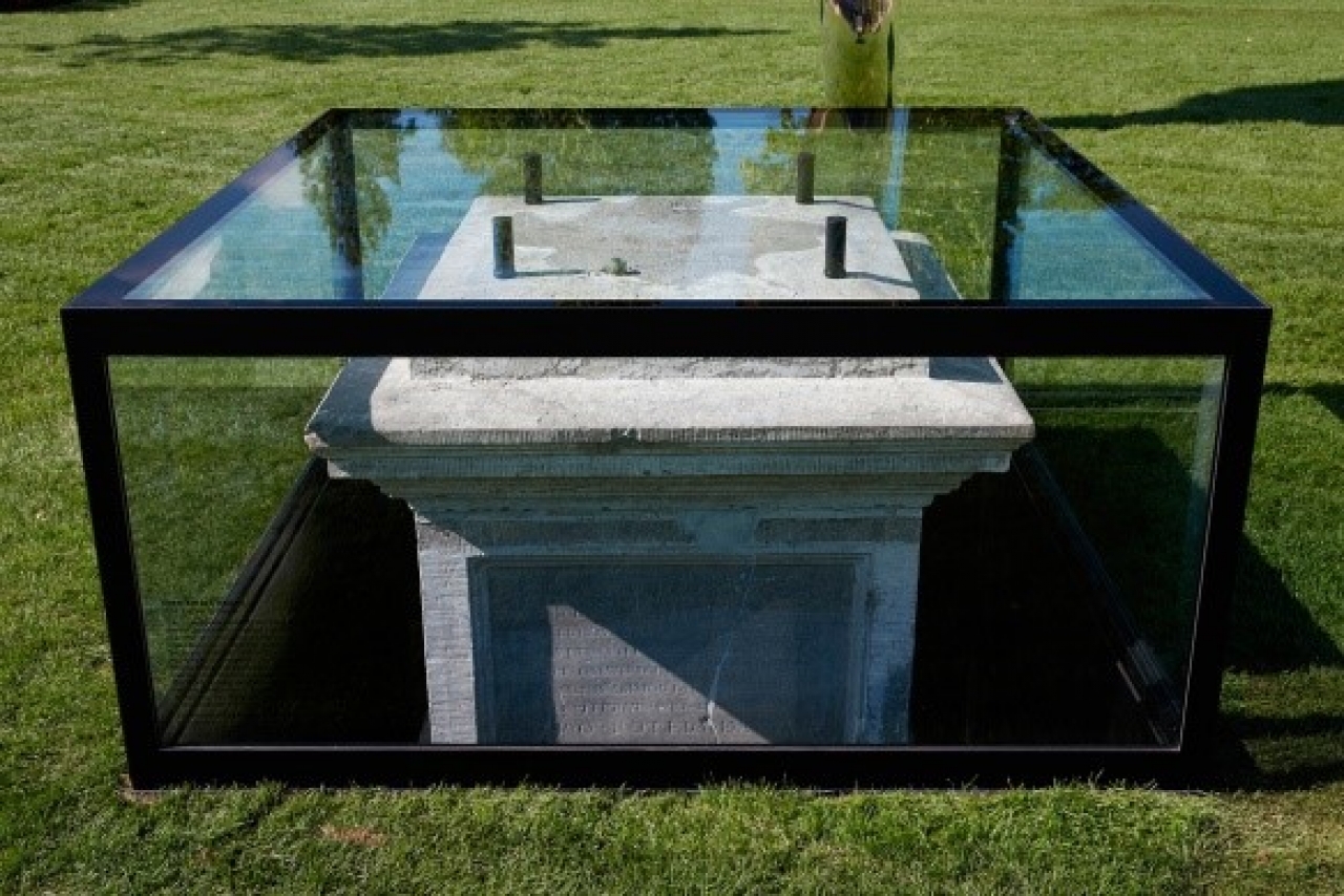 Er was een kunstenaar voor nodig, Kathrin Schlegel, om in deze stille getuige de steen der wijzen te herkennen. Wakker geschrokken experts claimden meteen zorg tot in de puntjes. Het voetstuk, zo bleek uit nader onderzoek, is één van de twee alleroudste Nederlandse sokkels. Schlegel heeft het daarom in een vitrine opgenomen die alle sporen uit het verleden voor de toekomst bewaart. Haar werk is, prettig verheffend, een tegenwicht op de waan van de dag.