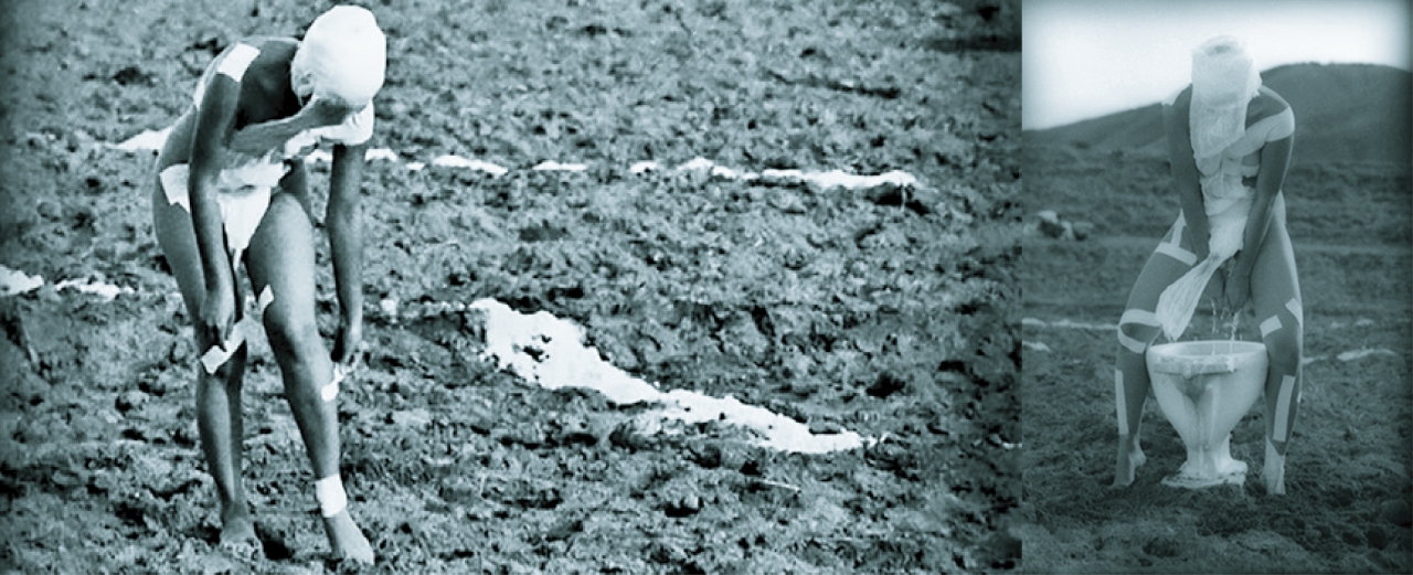 In een artikel over María Evelia Marmolejo, ook een exhibitionistische performancekunstenaar te noemen, kwam ik het begrip ‘preoccupatie’ tegen; ‘een geprefereerde bezigheid van de geest, meestal gepaard met (een) lichamelijk handeling(en). Het is een psychiatrisch begrip wanneer stereotypie in gedrag en interesse kan worden vastgesteld’. Het begrip werd gekoppeld aan de politieke onderdrukking van haar geboorteland Columbia in de jaren zeventig en tachtig, de sociale en economische omstandigheden, milieukwesties, en de situatie en rol van vrouwen die zij in haar oeuvre visualiseert en bespreekt met haar eigen vrouwelijke lichaam. In 1982 behandelde zij aan de rand van de Río Cauca, een rivier in Colombia, de milieukwestie met haar werk Anónimo 3. De bevuilde rivier was een teken van de vervuiling die de industrieën over de hele wereld produceren. Door de chemicaliën in rivieren te gooien verandert de biodiversiteit van de natuur. In een kwartier durende performance reinigde zij haar lichaam boven een toiletpot die aan de rand van de rivier stond. Haar gezicht bedekt met een witte doek en haar lichaam beplakt met stukjes tape waste zij haar vagina. De vloeistoffen vielen in de pot en op de grond.