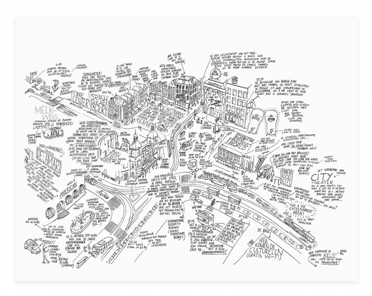 Of neem bijvoorbeeld Jan Rothuizen, die doormiddel van wandelingen een associatief beeld op papier zet in de vorm van handgetekende kaarten van Amsterdam. Zijn werk bevraagd zijn relatie tot de stad. Hoe verhoudt de mens zich tot de straten waarin hij zich begeeft?