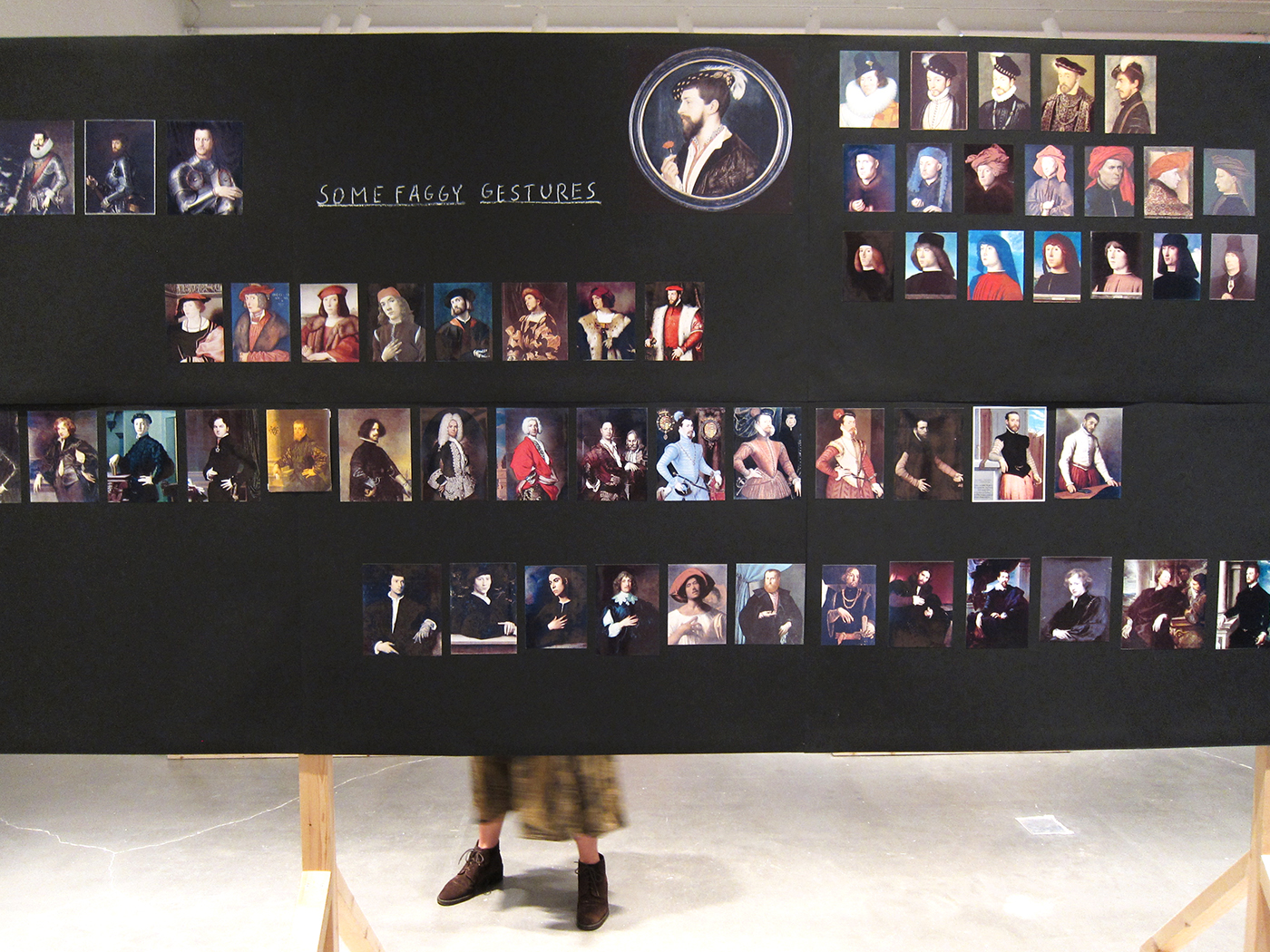 Met Some Faggy Gestures (2007) rekte Henrik Olesen het kunsthistorische plaatje verder op: hij bekeek oude kunst door een queer lens en geeft zo een ‘twist’ aan de kunstcanon. Door zowel kunstwerken als christelijke kunst te bevrijden uit het traditionele, vastgeroeste narratief kunnen ze nieuwe betekenissen krijgen, zoals blijkt uit de herinterpretaties door de tijd heen van een Ecce Homo-voorstelling van Jezus, een met pijlen doorzeefde Sint Sebastiaan en de gerehabiliteerde Maria Magdalena.