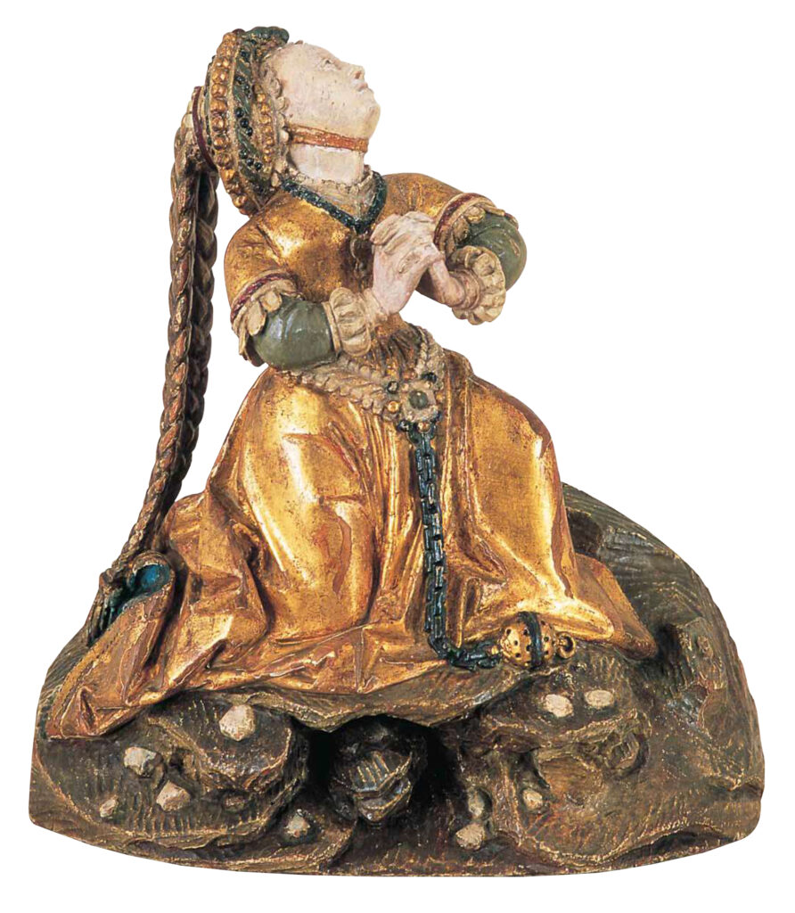 Jaren geleden werd ik getriggerd door het beeldje Knielende Maria Magdalena (c. 1525). Het Magdalena-beeldje van de Maastrichtse beeldsnijder Jan van Steffeswert ontroerde mij dagelijks tijdens mijn stage in het Bonnefanten. Ik zag een rijk geklede figuur met een hoofdtooi en twee lange haarvlechten, in vol verdriet met ineengeklemde handen. De verfijnde manier waarop dit aangrijpende vrouwenfiguur uit hout is gesneden en van kleur is voorzien (polychromie) oogt delicaat, maar ook krachtig. Wie was deze vrouw precies? Vaag wist ik het wel.