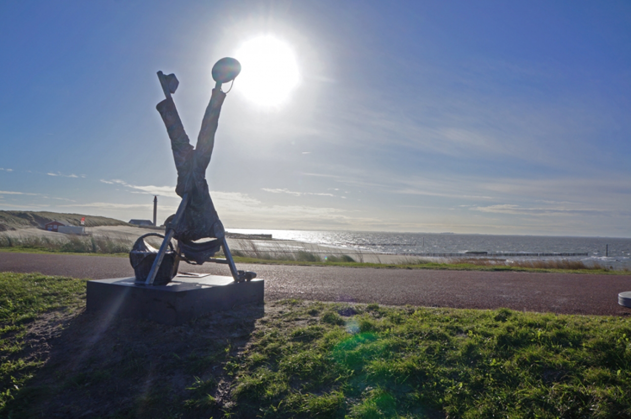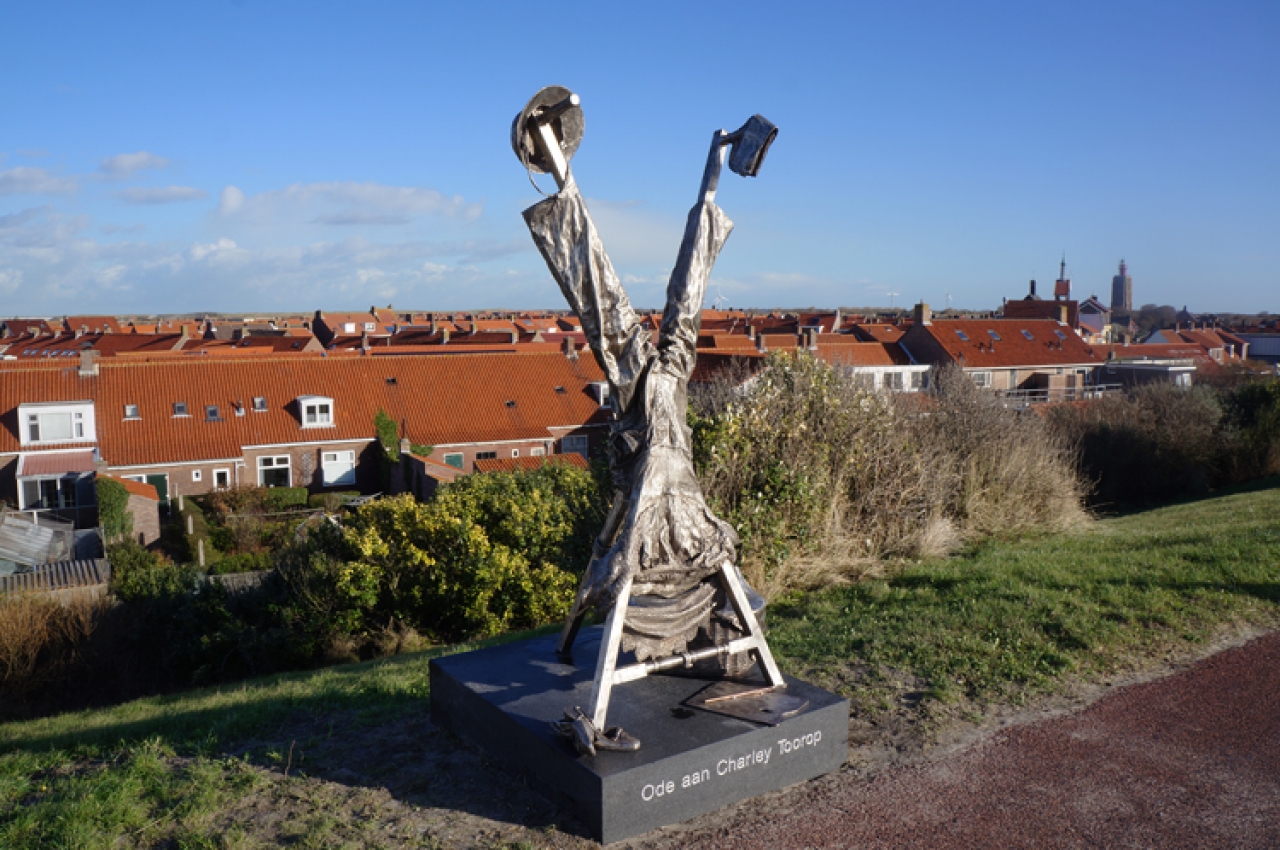 Maar dat is nog niet alles dat Assmann zo sterk aan het dorp bindt. Eind vorig jaar werd op de dijk bij Westkapelle een beeld van Assmann onthuld: ‘Ode aan Charley Toorop’. De kunstenares bracht namelijk vanaf 1924 tot in de jaren ’50 veel van haar zomers in het dorp door. Het beeld verrees ter hoogte van de plek waar zij vanuit haar hotel altijd de dijk overstak om naakt in zee te zwemmen.