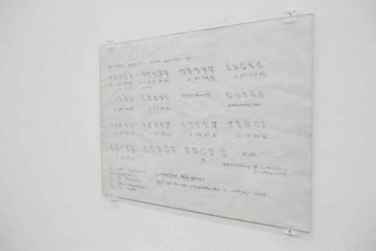 Een ander werk waar het verstrijken van tijd voelbaar wordt gemaakt is ‘Timetable’, waar Davids met haar eigen haren een letterlijk tijdschema heeft geborduurd van haar eerste jaar op de Rietveld Academie. Ook hier is de fysiek herkenbare persoon afwezig, maar is er een deel zichtbaar in de strengen haar. Waar de tijdlijn de tijd zelf belichaamt, symboliseren de haren dat er tijd is verstreken. Toch is de uitgebeelde tijd vrijwel nooit nauwgezet, maar nagenoeg altijd een claustrofobische verstilling van het verstrijken ervan. Zo bepalen de uitvoerders binnen de performance-installatie ‘Table’ het tempo met hun ademhaling, maar zijn verdere bewegingen niet tot nauwelijks aanwezig, en is er bij ‘Timetable’ een moment -één jaar- gepakt, dat nu als object zijn eigen verstrijken van tijd ondergaat, verstilt in een lijst aan de muur. Het ontbreken van een begin en een eind maakt dat het werk juist vastgeklemd staat tussen beiden.