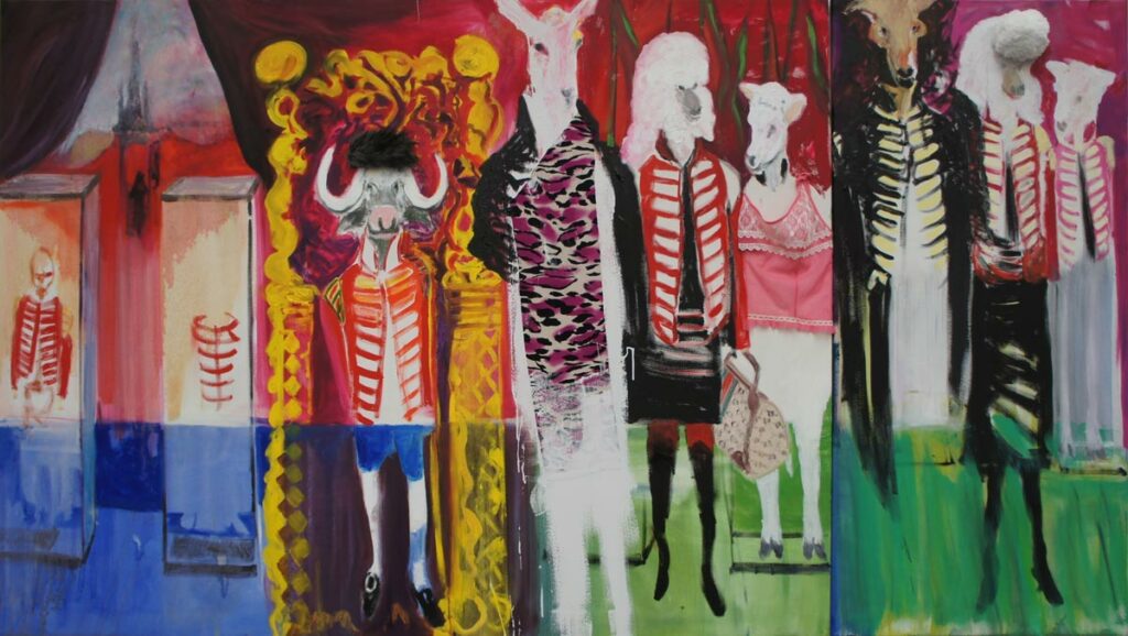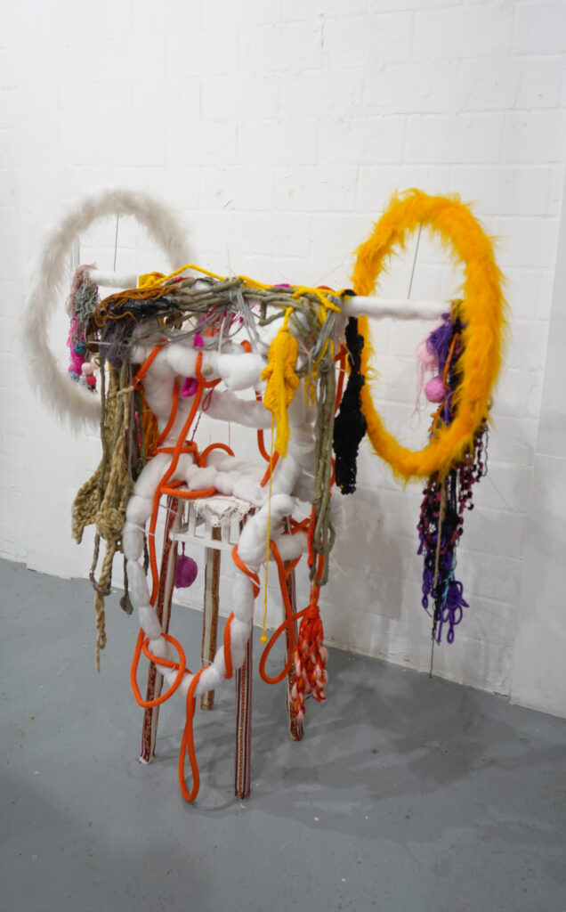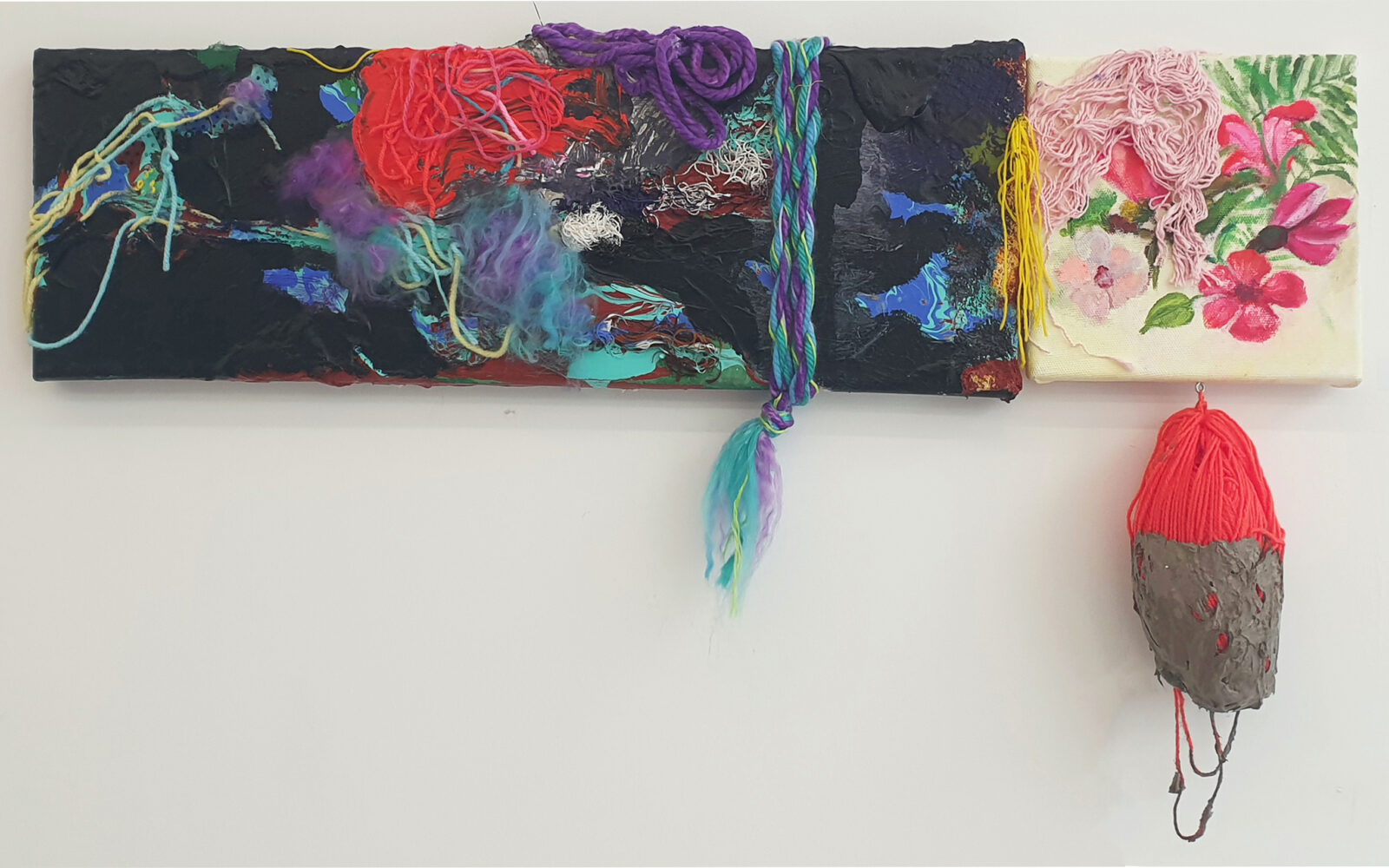 Deze textiele werken verwijzen naar traditionele handwerkvormen – haken, breien, borduren, weven, kantklossen – die in de hiërarchie van de kunst als vormen van vrouwelijke handvaardigheid lang laag in de rangorde hebben gestaan, en die zij als schilder nieuwe impulsen geeft in een fantasierijke, brutale en onbeschaamde uitwerking.