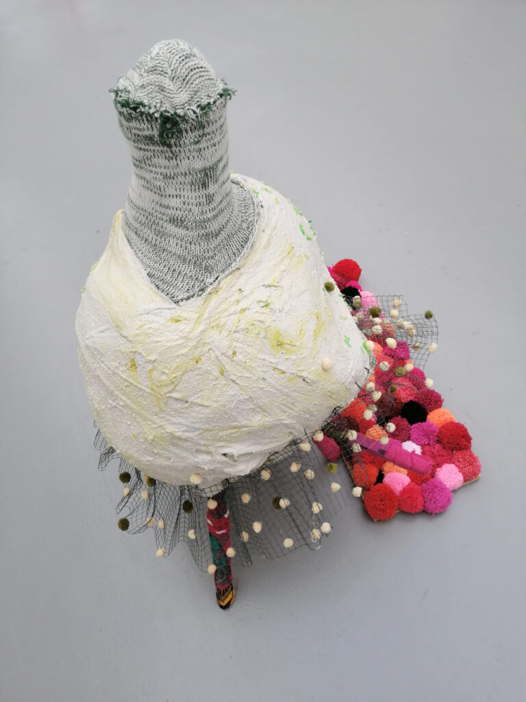 Ze gooide het roer om en begon drie jaar geleden te werken aan haar 2D werken onder de noemer femmeBRUT en het laatste jaar aan de textiele sculpturen van een groep gestalten met uiteenlopende achtergronden en karakters waartoe zij zich persoonlijk kan verhouden, als het sociale netwerk van vrijdenkers dat ze in de kunst om zich heen heeft verzameld. Waar dit nieuwe begin haar brengt nu ze net 68 is geworden weet ze nog niet: ‘Ik weet niet hoe het verder gaat…,’ zegt ze, maar één ding is zeker: ze is niet te stuiten.