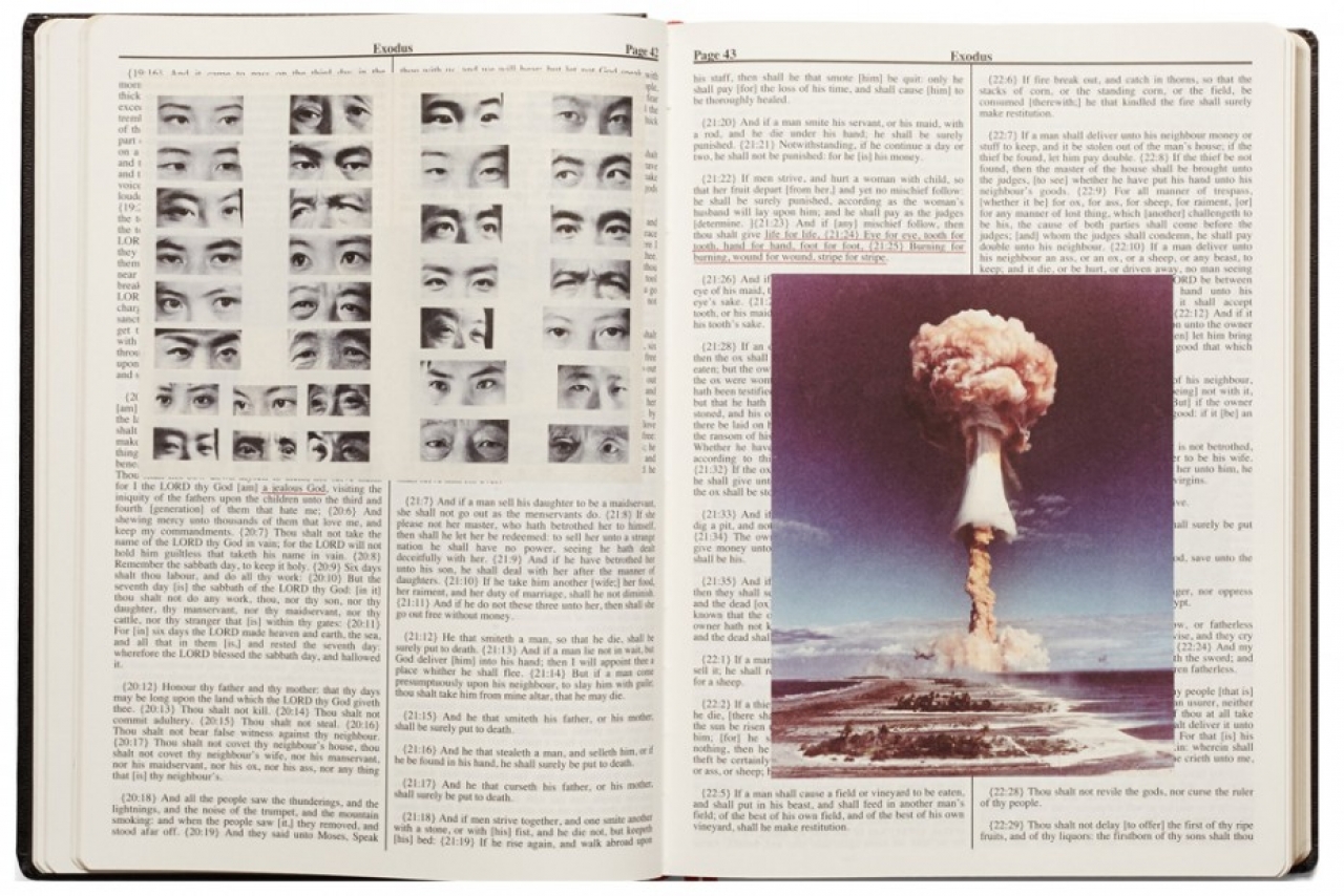 Mariska van Zutven: ”Dit jaar bezocht ik de expositie van Adam Broomberg & Oliver Chanarin in het Fotomuseum Antwerpen. Ergens in de wandelgangen was ik de Holy Bible, gemaakt door het duo, al tegengekomen en deze smaakte naar meer.Bij Broomberg en Chanarin wordt fotografie, of liever gezegd ‘beeld’ naast documentair ook maatschappelijk, politiek en universeel. De diverse projecten overstegen gezamenlijk het hier en nu. Dit keer bleef ik geen toeschouwer van een goed gefotografeerd landschap of gedocumenteerd leed. Ik werd onderdeel van onze geschiedenis die in beweging is en zich vertaald heeft in fotografie, beeldgebruik en tekstfragmenten. Voor het eerst sinds lang werd ik opgezogen en daarna stil.”