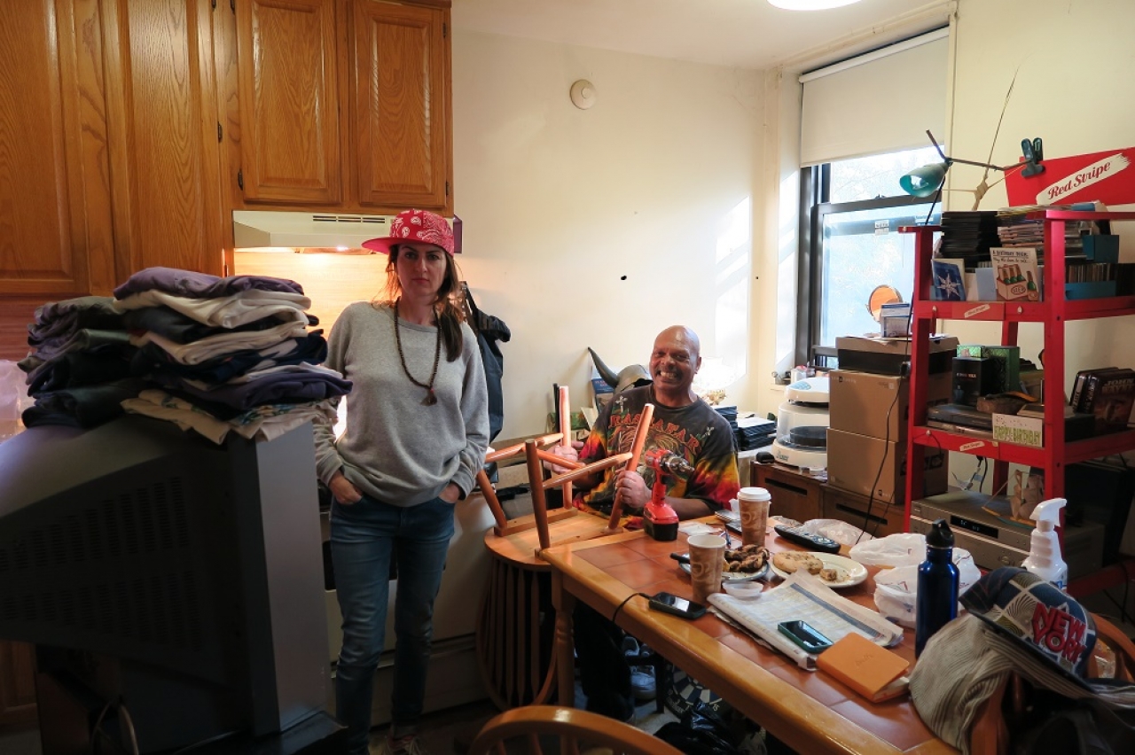 Mishiba knows a lot about the African American history of Peekskill. She explains about Paul Robeson and about the Underground Railroad. During re-enactments by the Underground Railroad Tours she has acted the role of Harriet Tubman a few times. In her bookcase she searches for Paul Robeson’s Here I Stand for us. We have to read it, to understand the history. A friend who pops by to visit takes another book from the bookcase: How To Become A Millionaire. Another useful book for people in Bohlmann Towers, he jokes. He doesn’t have high expectations, because by the look of it it’s a written-off library copy.