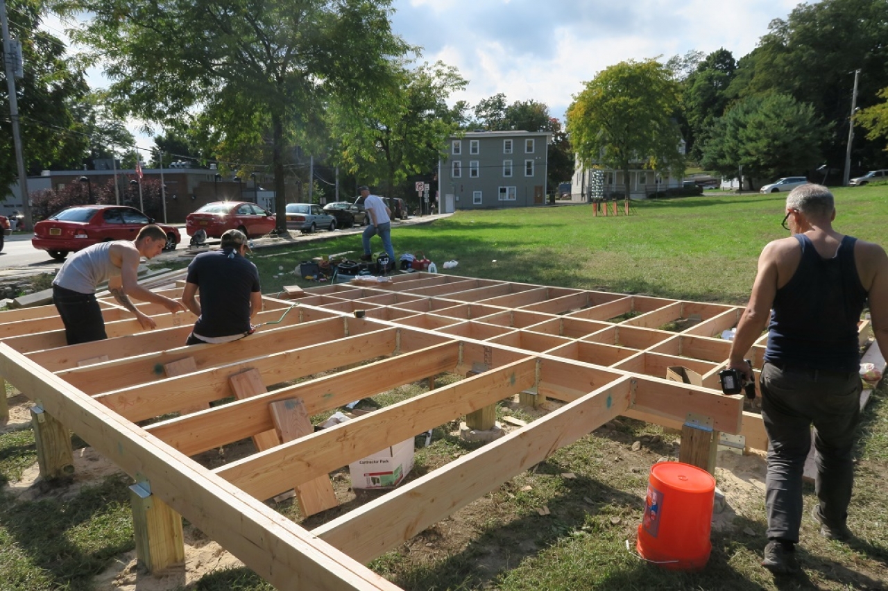 Today is the opening of the festival. The weather’s wonderful and it’s bustling in the streets with visitors from outside Peekskill. Our sculpture still hasn’t been realized and the wall paintings can’t be viewed without prior agreement, but we hear that there’s a journalist from the The New York Times who is interested in our project and wants to see the wall paintings. Emerson is happy for her to visit his apartment.