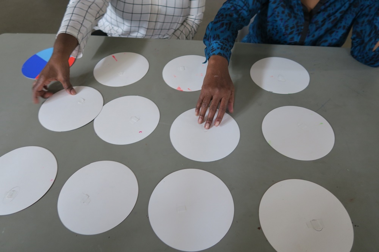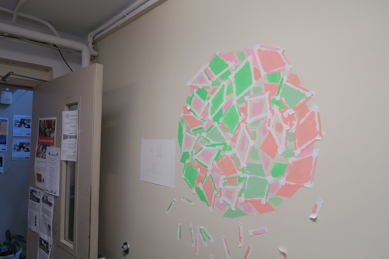 In the afternoon Ms. Doris and Ms. Rainey choose colours ‘blindly’ for their painting. I don’t know how they’re doing it, but they’re ‘blindly’ selecting the four most gentle, most calming colours that we have: two shades of pastel pink and two shades of light green. Not a bad choice for this place!